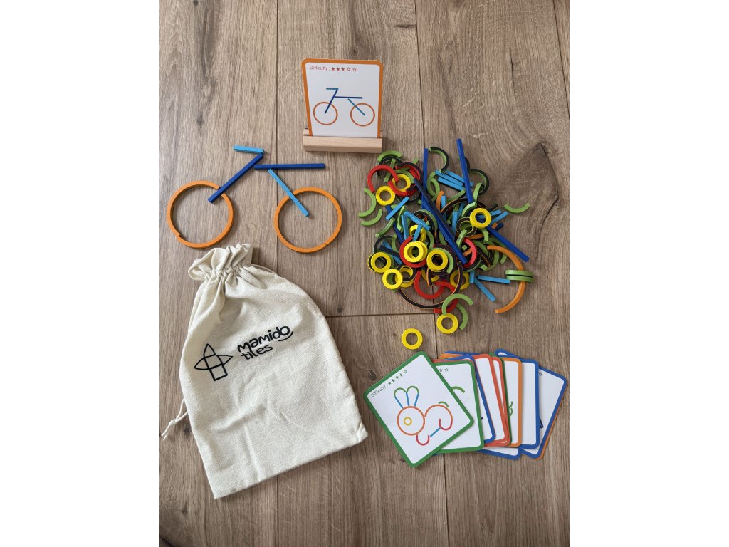 A csomag tartalmaz 20 kétoldalas sablonkártyát is, különböző nehézségi szintekkel. A gyerekek választhatnak, hogy pontosan a kártya alapján hozzák létre a képet, vagy szabadon engedik a képzeletüket dolgozni. Alkotni lehet mágneses falon, táblán, hűtőn vagy bármilyen mágneses felületen.