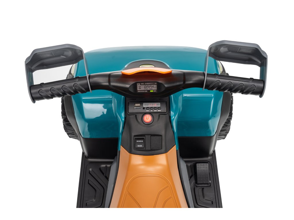 A gyermek elektromos quad két motorral van felszerelve, összesen 90 W teljesítménnyel. A quad könnyedén megbirkózik a különböző típusú terepekkel, a burkolatlan felületekkel és a dombokkal is.