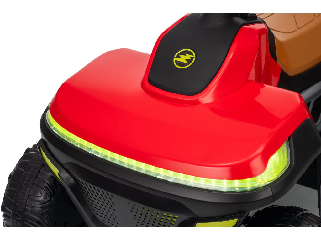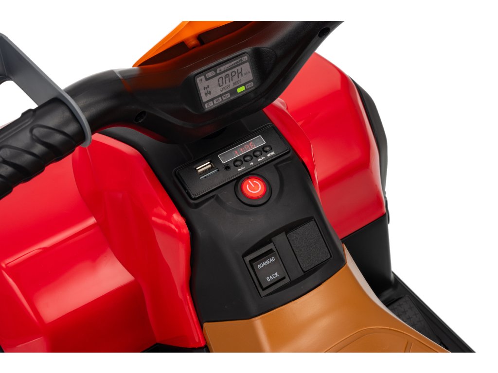 A gyermek elektromos quad két motorral van felszerelve, összesen 90 W teljesítménnyel. A quad könnyedén megbirkózik a különböző típusú terepekkel, a burkolatlan felületekkel és a dombokkal is.