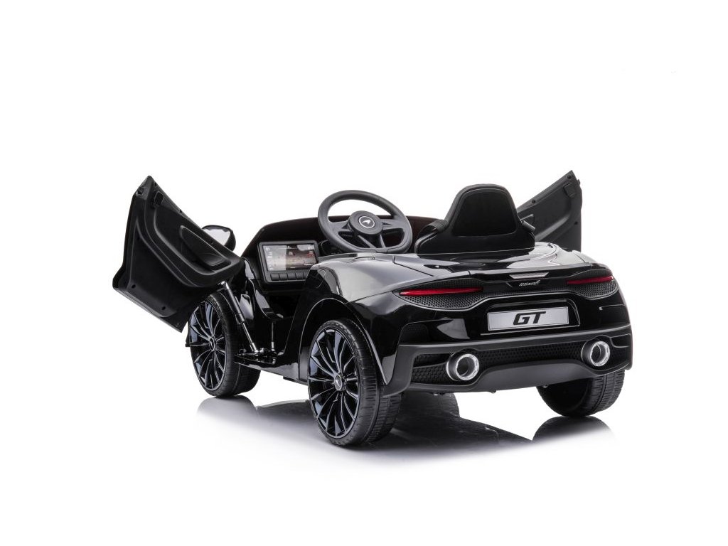 A McLaren GT elektromos autó két 45 W-os motorral és egy 12 V-os 10 Ah-s akkumulátorral rendelkezik. Az EVA hab kerekek és az ökológiai bőrrel borított ülés gondoskodik a kényelmes utazásról. Az MP3-as, USB-s, Bluetooth-os és rádiós zenepanel minden bizonnyal élvezetesebbé teszi az utazást a gyermek számára . A játékautó teherbírása 30 kg . A játékautó első és hátsó LED világítással és nyitható ajtókkal rendelkezik.