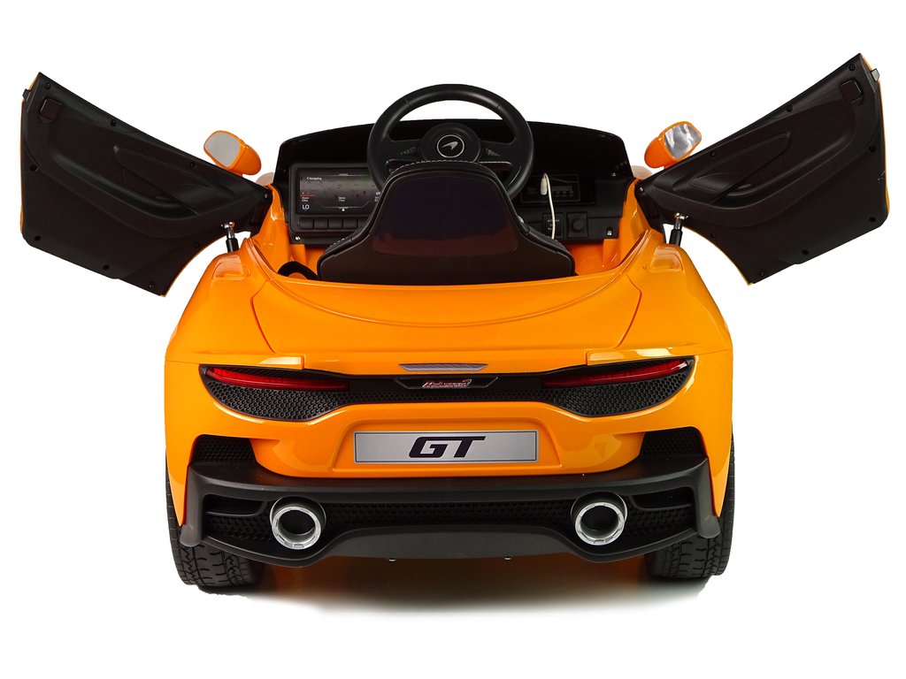 A festett McLaren GT elektromos autó két 45 W-os motorral és egy 12 V-os 10 Ah-s akkumulátorral rendelkezik. Az EVA hab kerekek és az ökológiai bőrrel borított ülés gondoskodik a kényelmes utazásról. Az MP3-as, USB-s, Bluetooth-os és rádiós zenepanel minden bizonnyal élvezetesebbé teszi az utazást a gyermek számára . A játékautó teherbírása 30 kg . A játékautó első és hátsó LED világítással és nyitható ajtókkal rendelkezik.