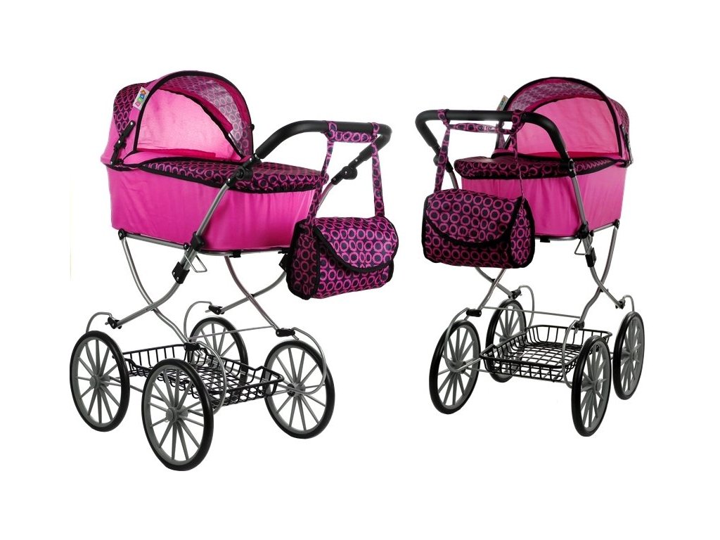 Bemutatunk egy retro babakocsit rózsaszínben, fekete részletekkel. Elsősorban kiváló kialakítása miatt ajánljuk, mely a retró stílusra utal, magas, vékony kerekeivel és elegáns, egyszerű formájával is felhívja magára a figyelmet. A babakocsi minden, legfeljebb 69 cm hosszú babához és játékhoz alkalmas lesz. A babakocsi könnyű, könnyen kezelhető, könnyen összecsukható és meglepően kis helyet foglal, így könnyedén bepakolhatod az autóba.