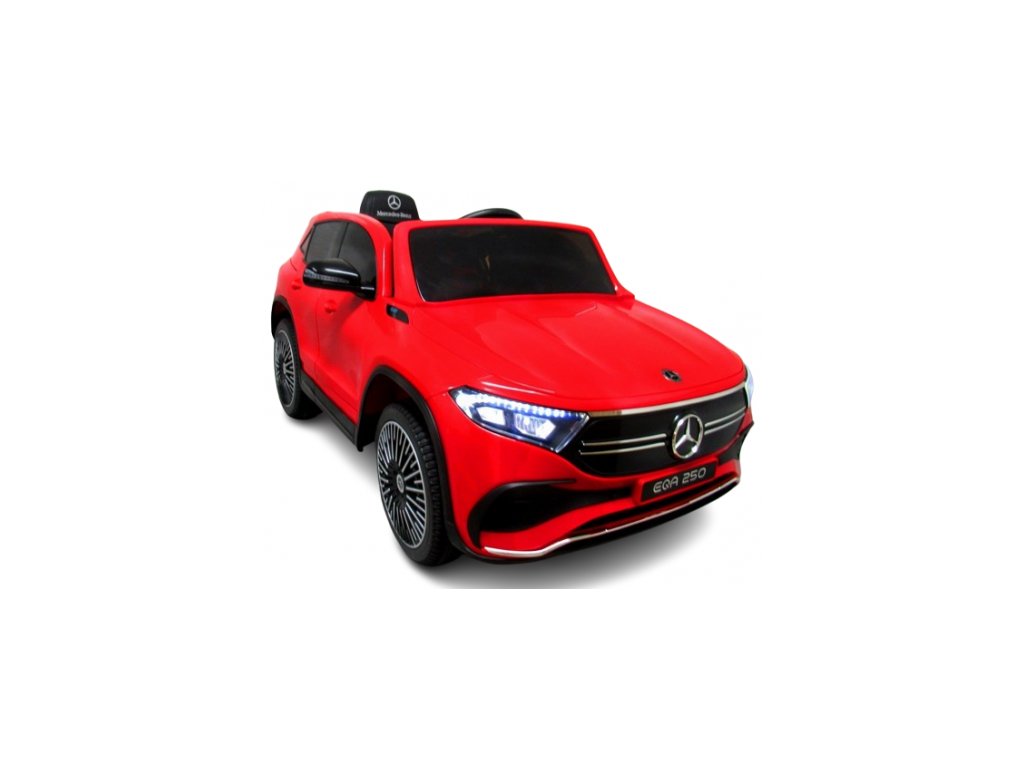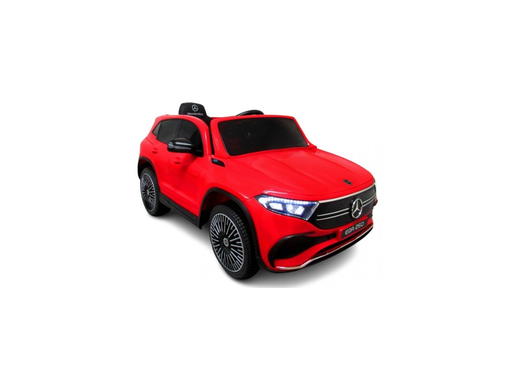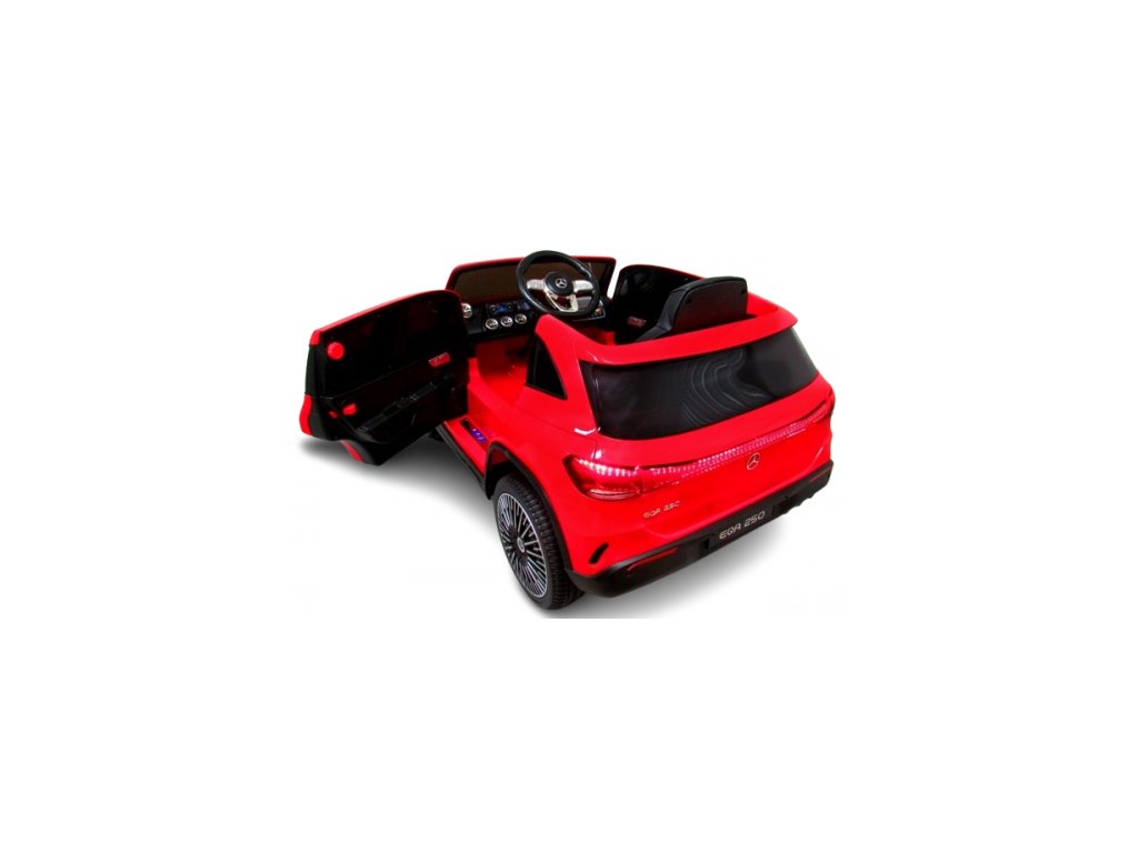 Mercedes EQA elektromos játékautó piros színben távirányítóval, bőrüléssel, EVA kerekekkel és gém funkcióval