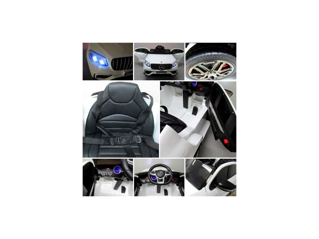 Gyermekengedéllyel rendelkező Mercedes GLC 63S játékautó gazdag felszereltséggel és innovatív dizájnnal. EVA hab kerekekkel van felszerelve, amelyek csendesek és nem zavarják a vezetést.