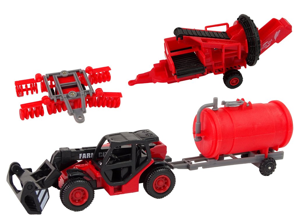 A mezőgazdasági gépkészlet nagyszerű ajándék minden kis mezőgazdasági gép rajongó számára. A készletben különböző, fém elemekkel ellátott pótkocsis traktorok találhatók, amelyeknek köszönhetően a készlet sokáig szolgál majd, és a kis gazda számos játékforgatókönyvet kitalálhat és fantáziáját fejlesztheti.