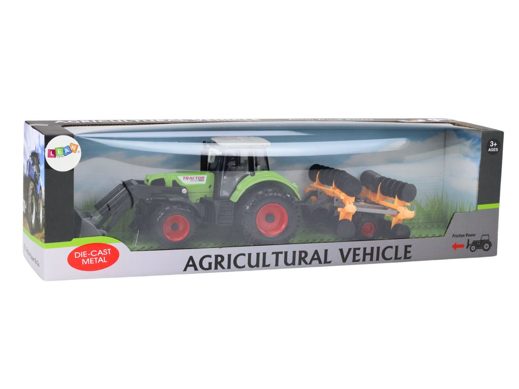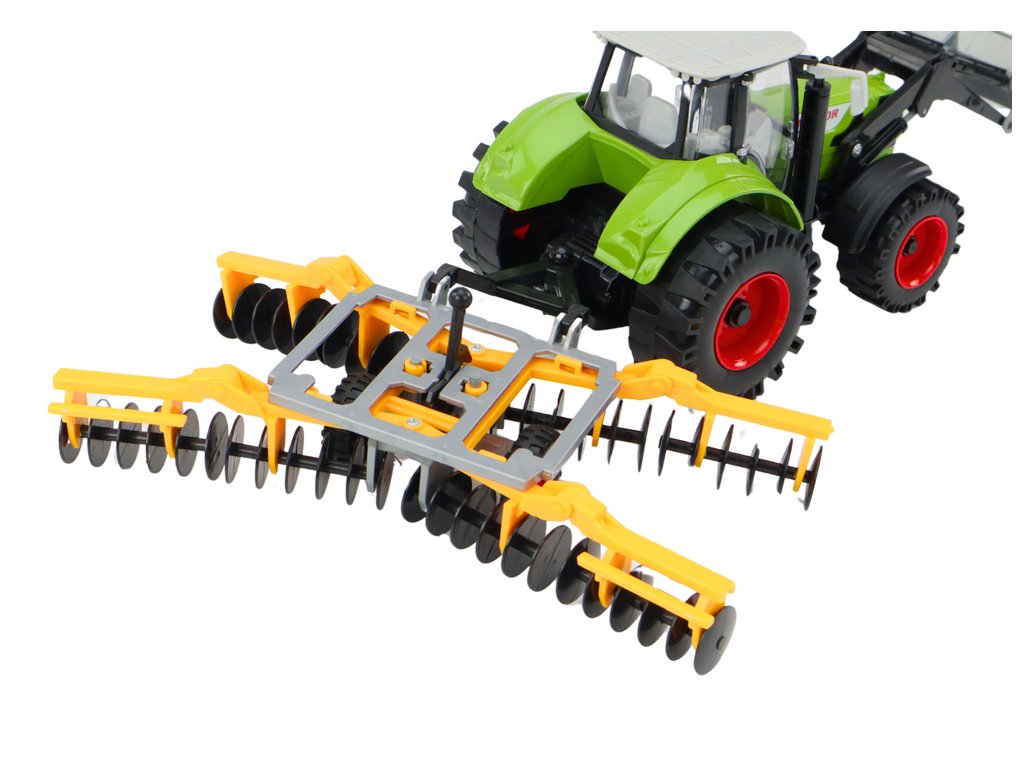 A tárcsás boronával ellátott traktoros kotró sokoldalú és nagyon vonzó játék, ideális a mezőgazdasági és építőipari gépek kis rajongóinak. A precízen, intenzív zöld színben kidolgozott traktor felhívja magára a figyelmet, és hosszú órákig tartó játékra ösztönöz. Valósághű megjelenése és masszív felépítése biztosítja, hogy ne csak szórakoztat, hanem oktat is egy játék.