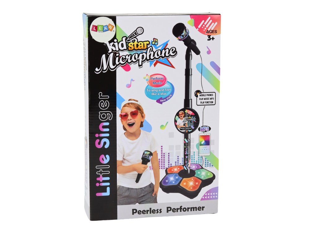 Ezenkívül mikrofonunk állítható állvánnyal is rendelkezik, amely lehetővé teszi a mikrofon magasságának beállítását a gyermek magasságához, ezzel biztosítva a kényelmet az éneklés során.