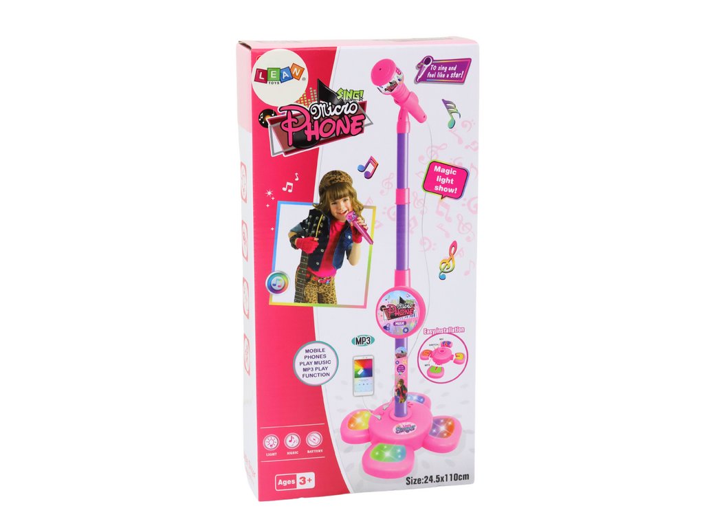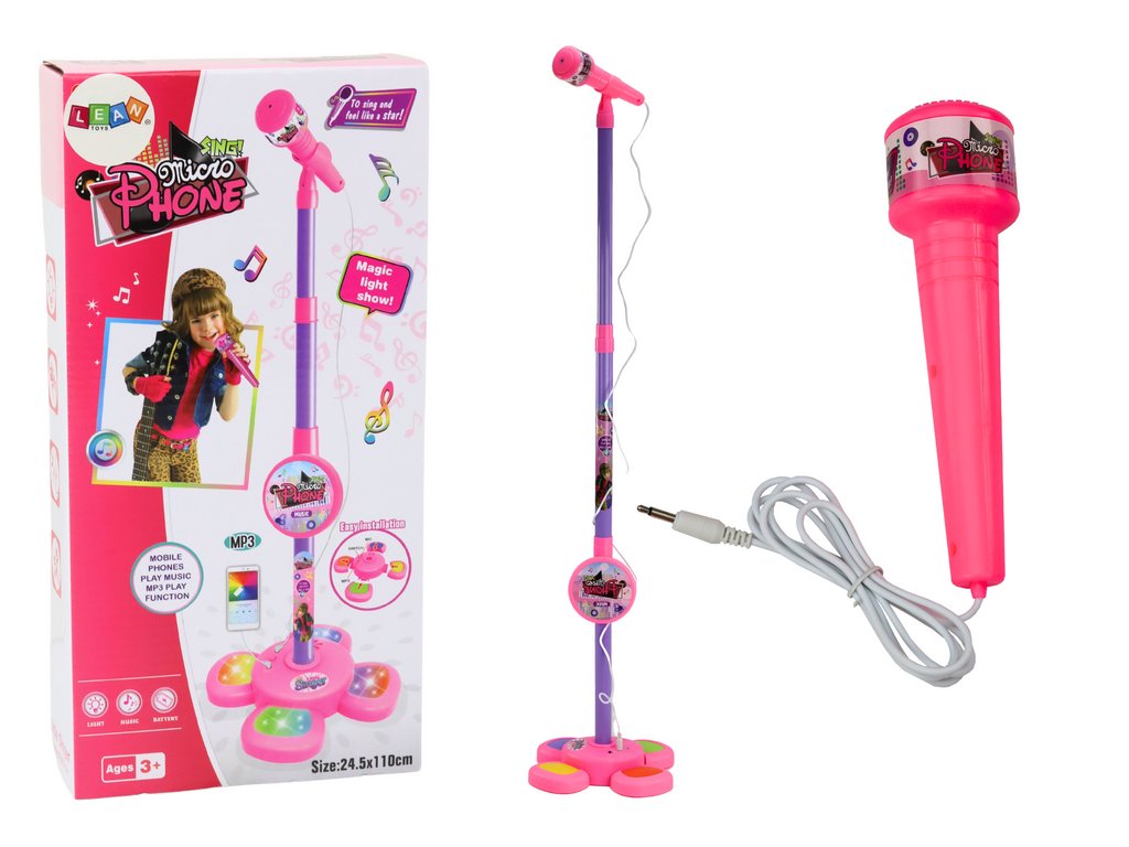 Mikrofon állvánnyal gyerekeknek, állítható, rózsaszín