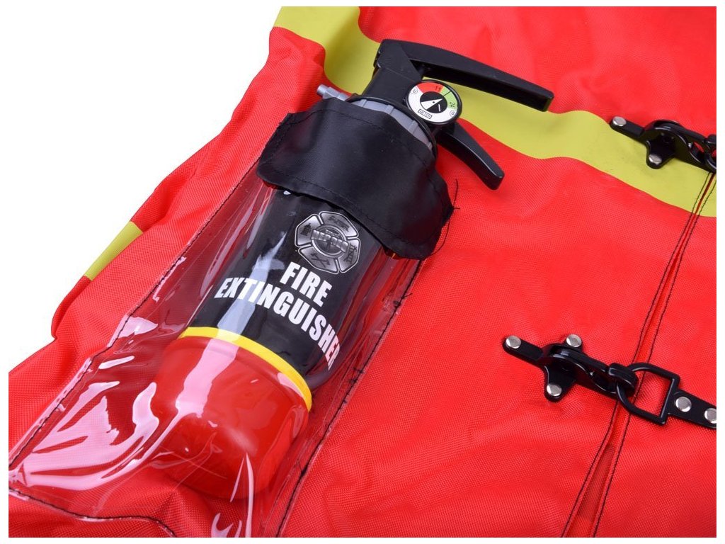 Ez a jelmez nagyszerű játékokhoz, karneválokhoz, maskarázáshoz és sok más alkalomhoz. A tűzoltókészülék vízzel feltölthető és valódi locsolóként használható. A készlet részletgazdag, és minden farsangi bálon vagy a kerti játék során biztosan lenyűgöz.