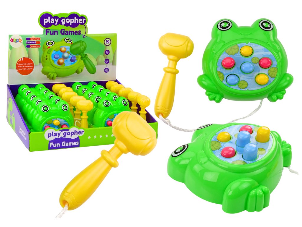 Mini játék Whack-A-Mole béka kalapáccsal a zöld zsinóron