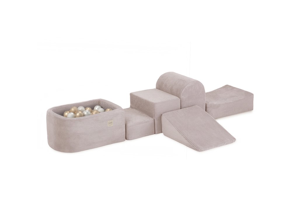 Mini játszótér medencével, prémium, világos rózsaszín kordbársonyból, 100 labdával