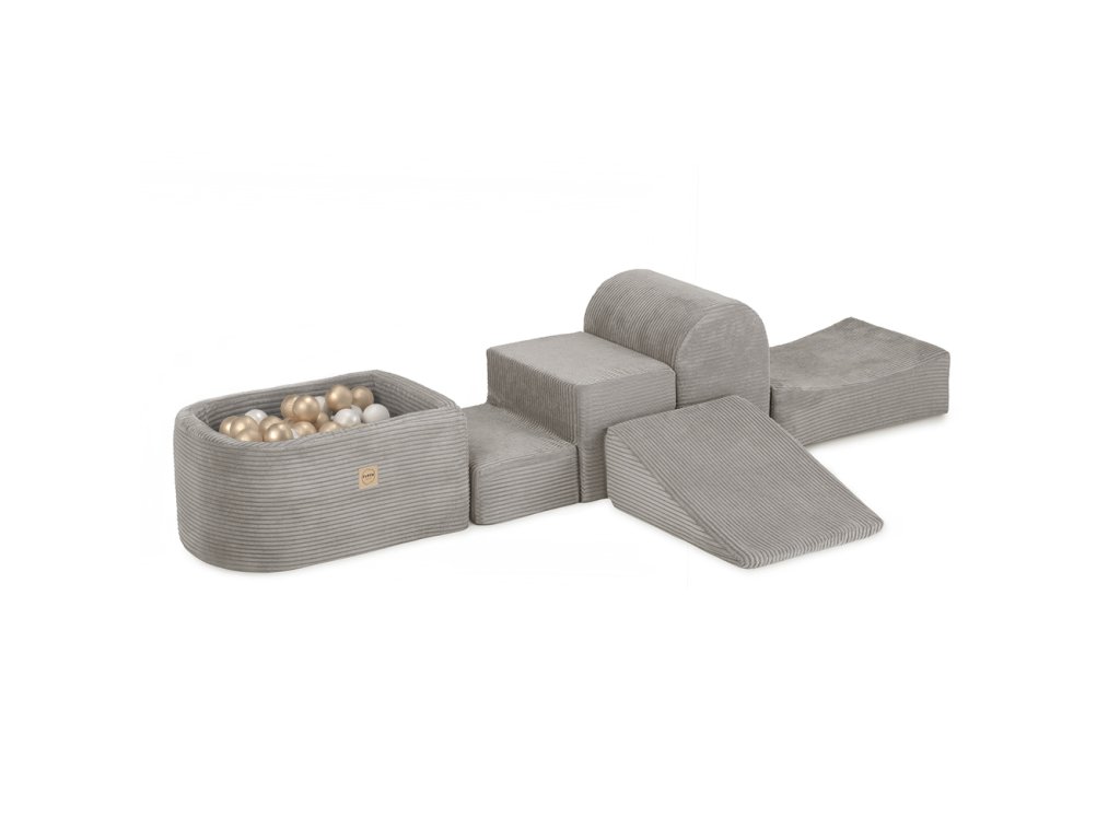 Mini játszótér medencével és 100 labdával, bézs prémium kordbársony