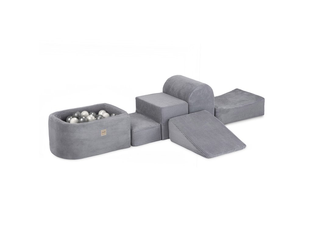 Mini játszótér medencével és 100 labdával, szürke prémium kordbársony