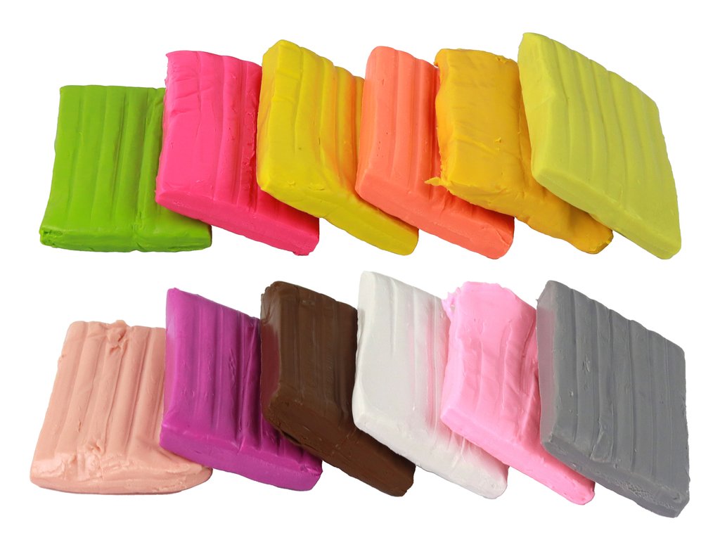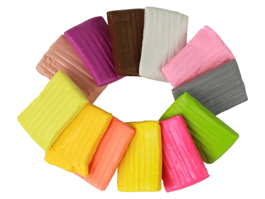 - Gyurma színek a készletben: rózsaszín, sárga, zöld, barna, fehér és szürke árnyalatai.