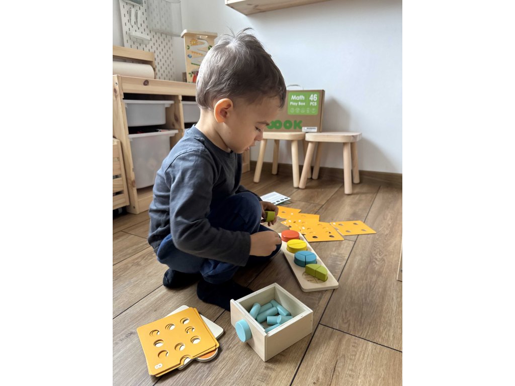 Fejlessze gyermeke matematikai készségeit és logikus gondolkodását a gyermekeknek szánt Montessori Math Box segítségével. Ez a doboz 46 darab gondosan kiválasztott játékot tartalmaz, amelyek támogatják a számok, formák és színek tanulását. A készlet számlálógyűrűket, színes geometrikus formákat és interaktív kártyákat tartalmaz. Minden játék biztonságos, környezetbarát anyagokból készül, amelyek kímélik a gyermekek bőrét.