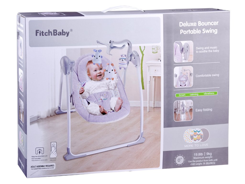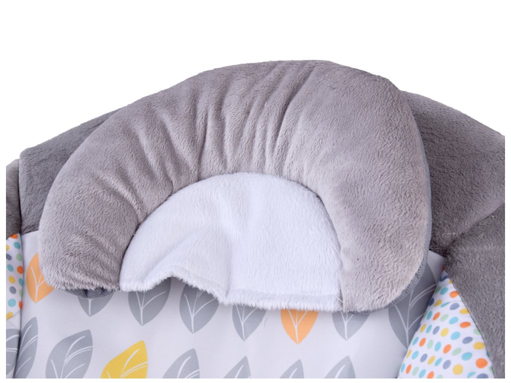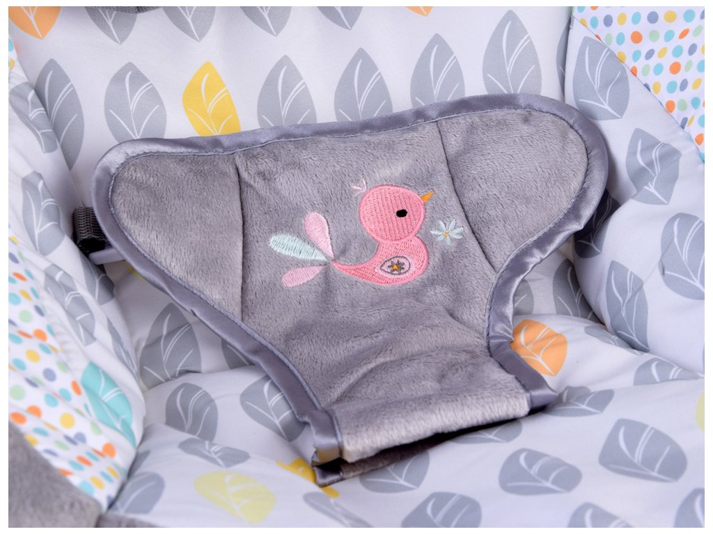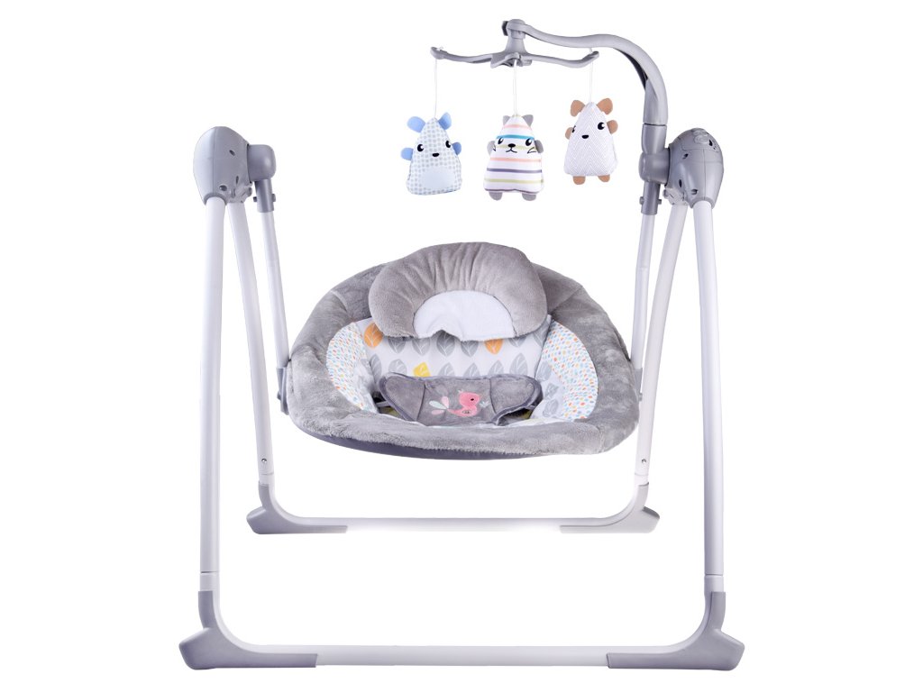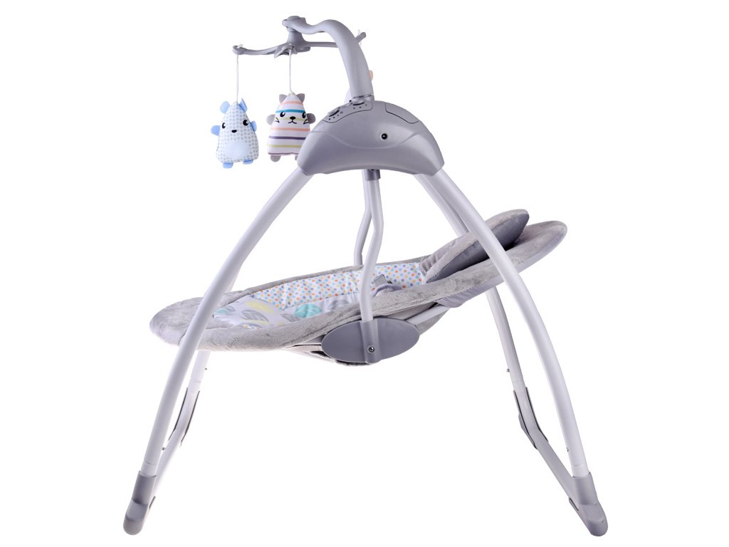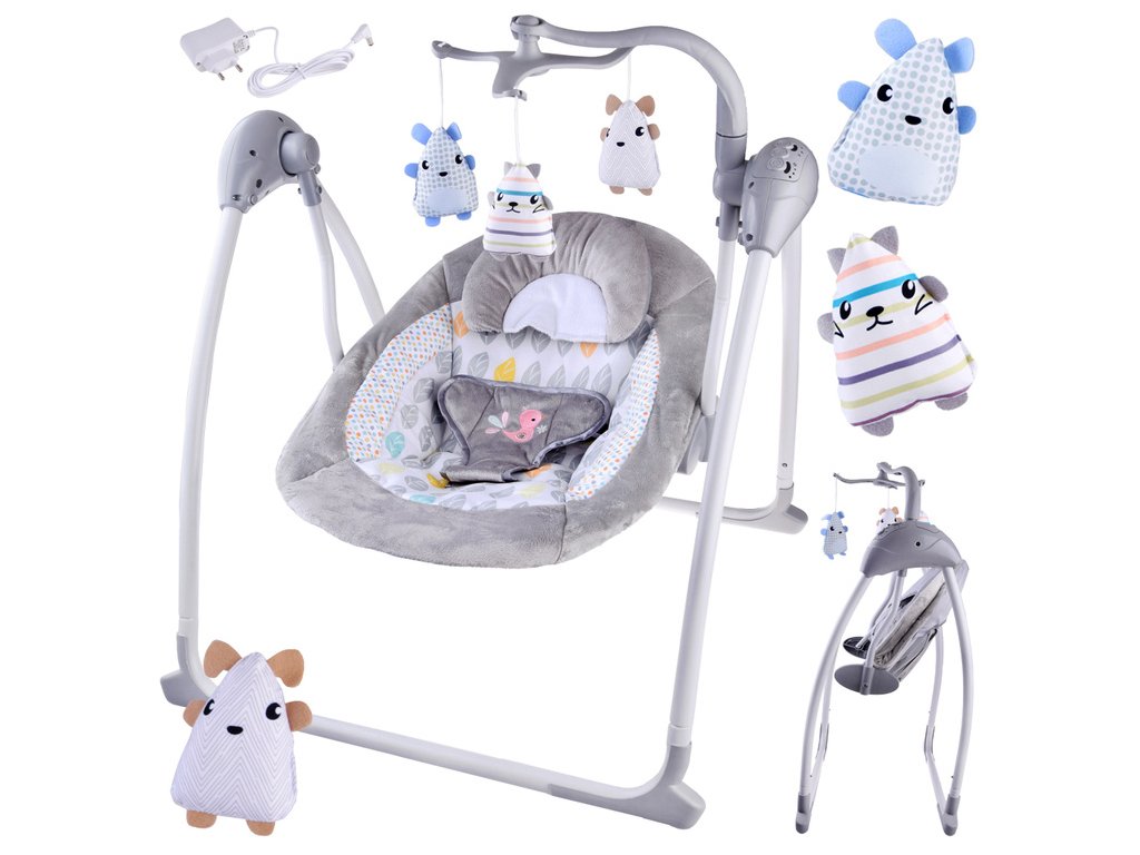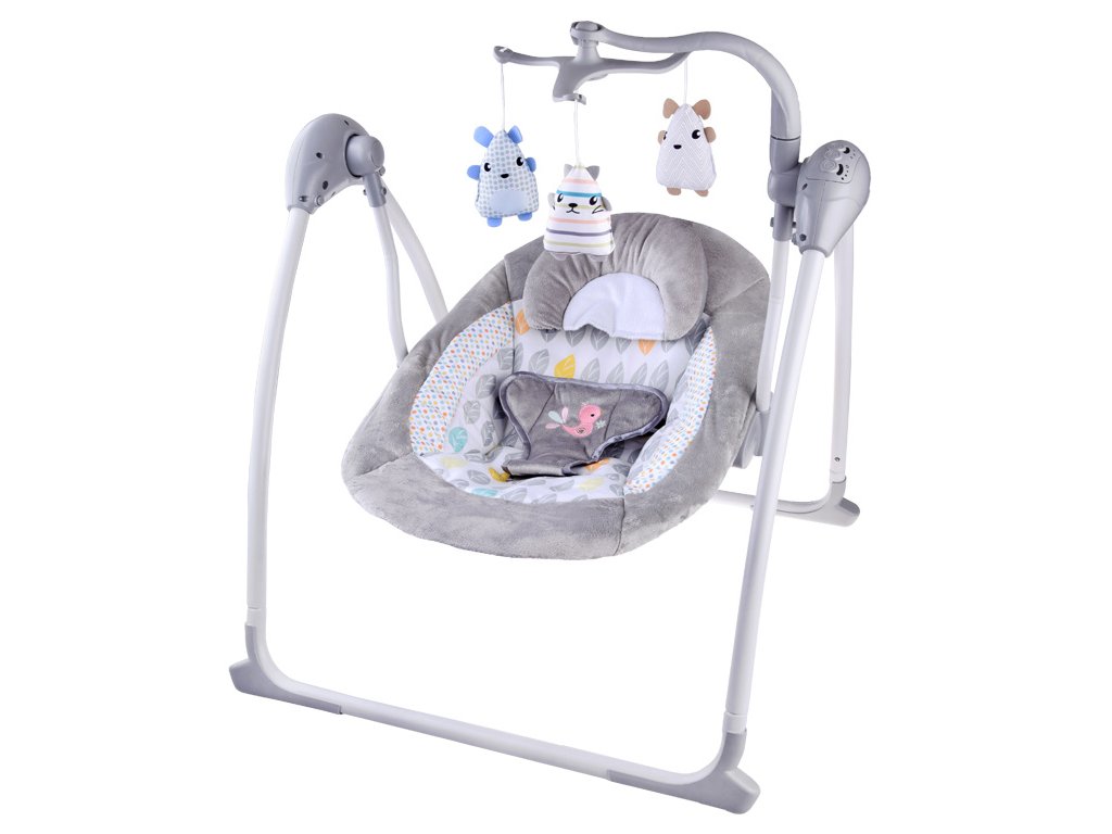 Az elektromos fotel nagyszerű megoldás minden új szülő számára. Állítható biztonsági övek gondoskodnak a gyermek biztonságáról. A puha, kényelmes ülés levehető plüss fejtámlával gondoskodik a kényelemről. Az ülés kárpitja levehető, így könnyen tisztán tartható, ami a babáknál különösen fontos. Három aranyos plüss kabalája van felakasztva az ülés fölé, hogy felhívja magára a gyermek figyelmét. A nyugágy zárható, hogy csak ülésként működjön. A keret fém csövei garantálják a stabilitást.