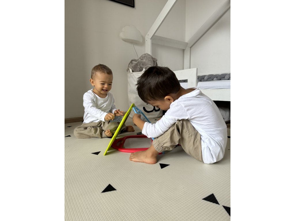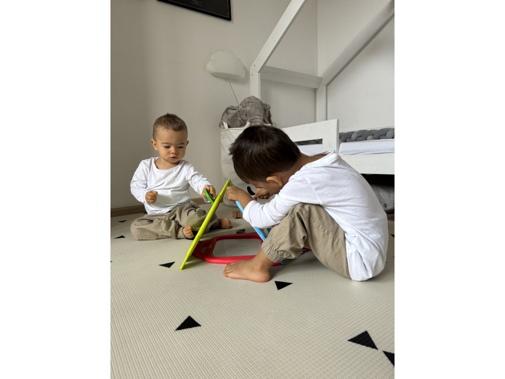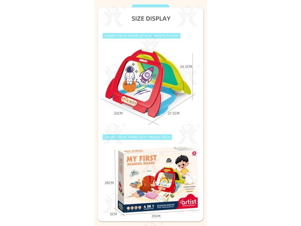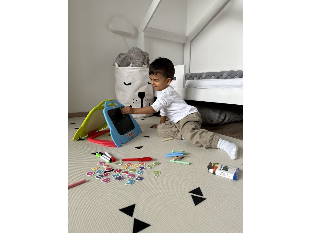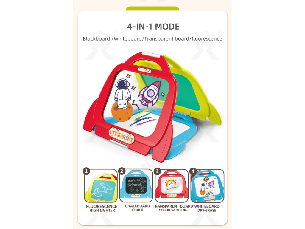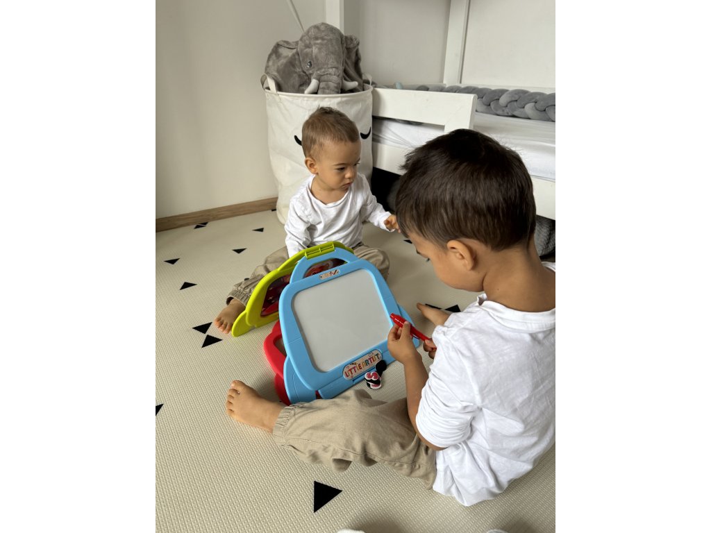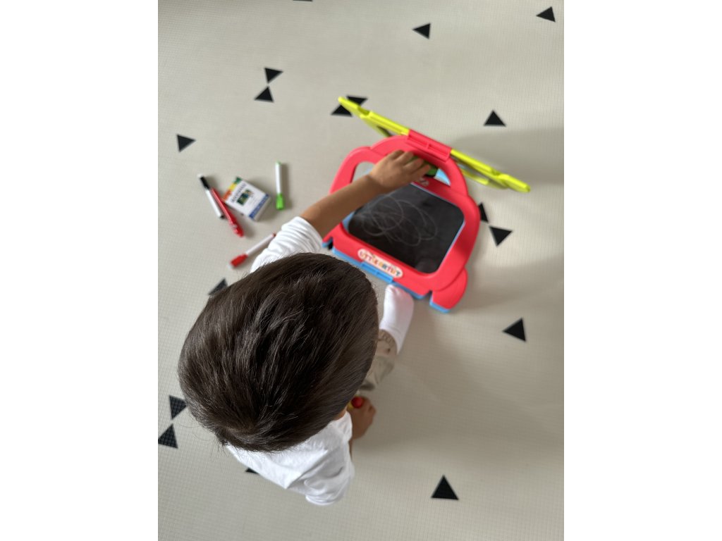 - 4 különböző panelt tartalmaz rajzoláshoz és íráshoz. - Támogatja a gyerekek kreativitását, segíti a kifejezőkészség megtanulását. - Fejleszti a finommotorikát, a képzelőerőt, a koncentrációt és a kommunikációt.