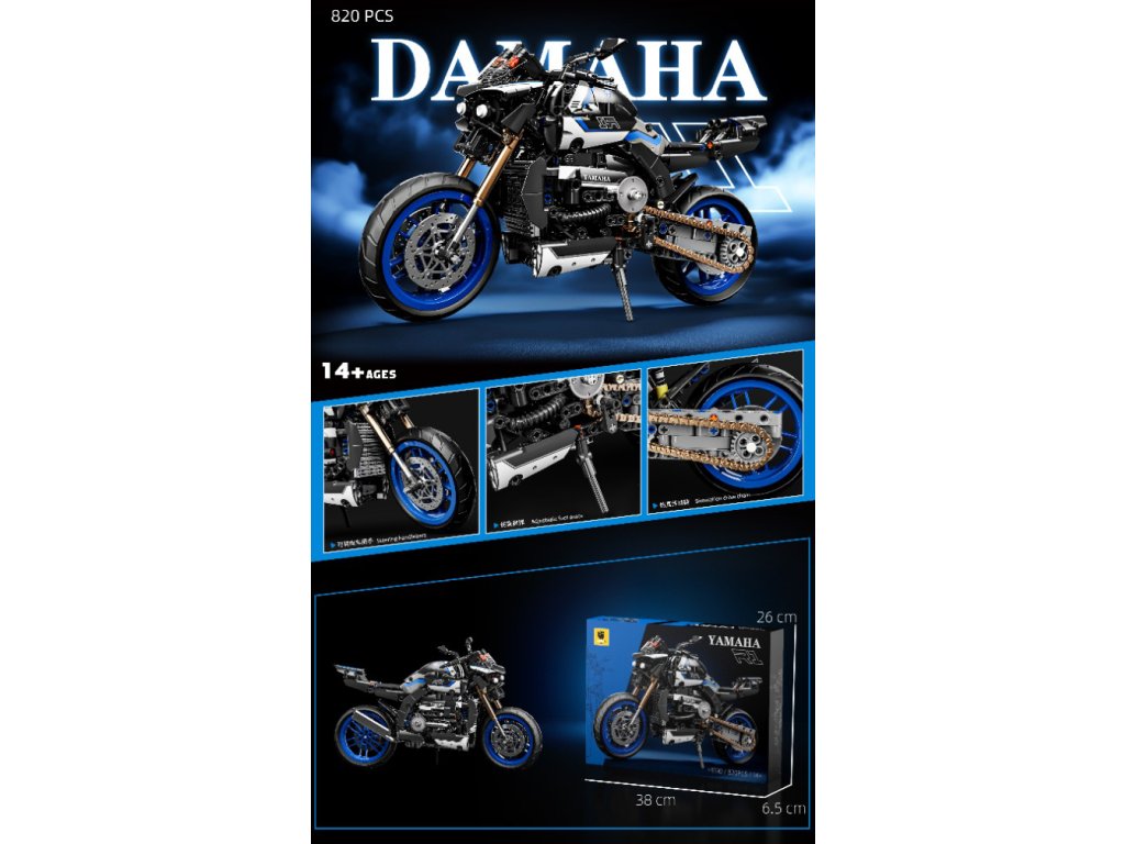 Műszaki építőkocka motorkerékpár Damaha 1:8 820 darab kék MT1614