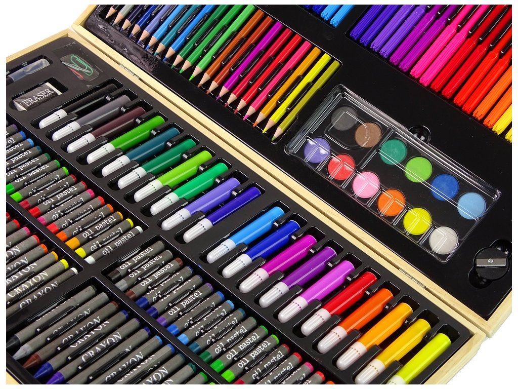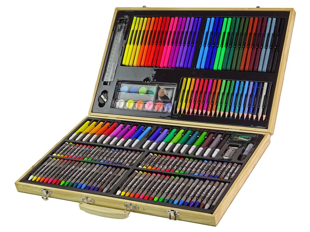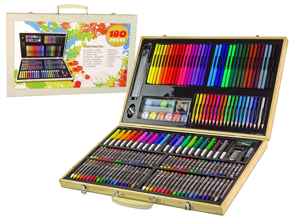 Művészi festőkészlet: Fa tok 180 elemmel