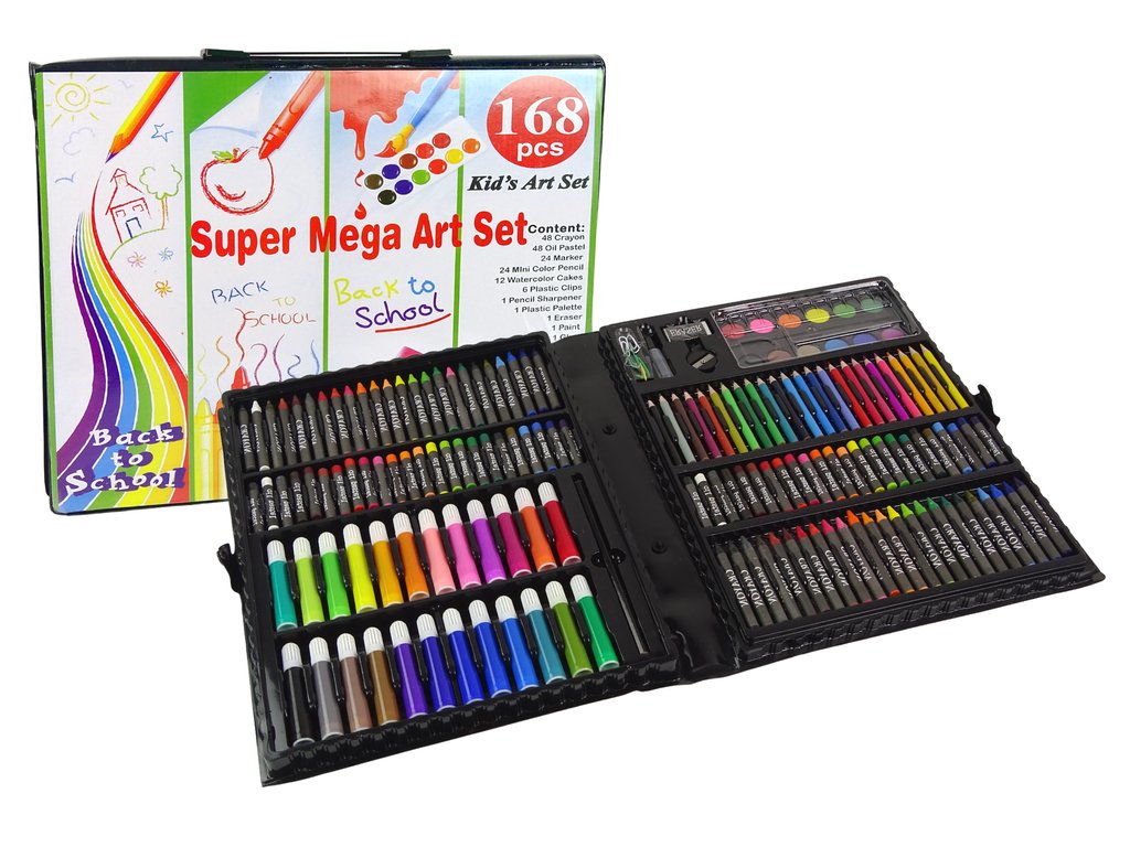 Gyerekeknek készült művészeti készlet , amely bármilyen alkalomra alkalmas ajándéknak. A rajzolás és a festés befolyásolja a gyermek finommotorikus készségeinek megfelelő fejlődését. Serkenti a kreativitást, de egyben meg is tornáztatja a gyermek agyát, felkészíti a tanulásra, írásra.