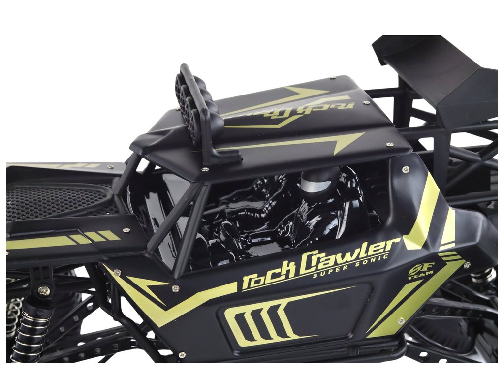 1:8-as méretarányával és négy hajtott kerékével a terepjáró készen áll bármilyen terepre. A nagy gumiabroncsok és a magas rugós felfüggesztés megkönnyíti a mozgást változatos terepen.