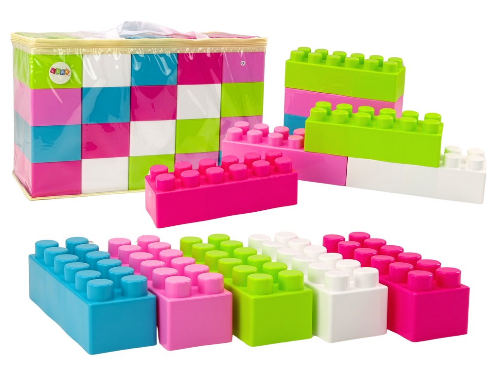 A 20 elemből álló nagyméretű, hosszanti kockákból álló készlet igazi kincs a kreatív játékot szerető gyerekek számára. A készlet szokatlan, nagyobb méretű téglákból áll - mindegyik 28 cm x 9 cm x 9 cm méretű, így könnyen megfoghatók, és még fiatalabb építők számára is alkalmasak az építkezésre. A zöld, rózsaszín, fehér és türkiz árnyalatai élénk, örömteli színpalettát kölcsönöznek a készletnek, amely ösztönzi a képzeletet és a kreativitást.