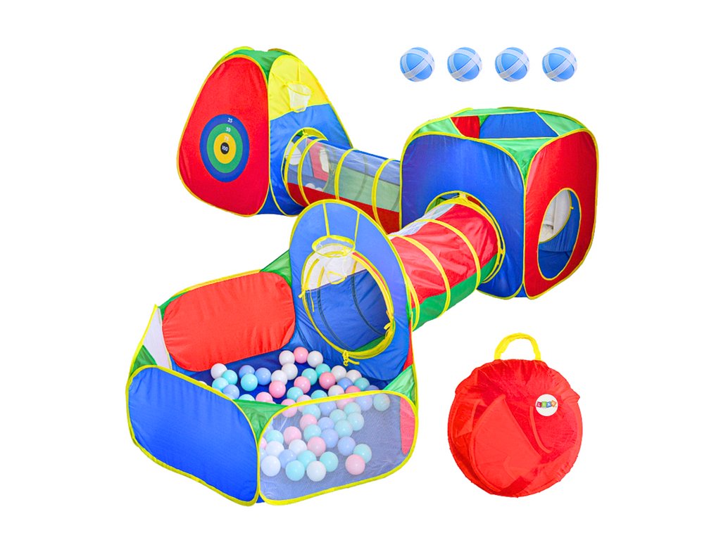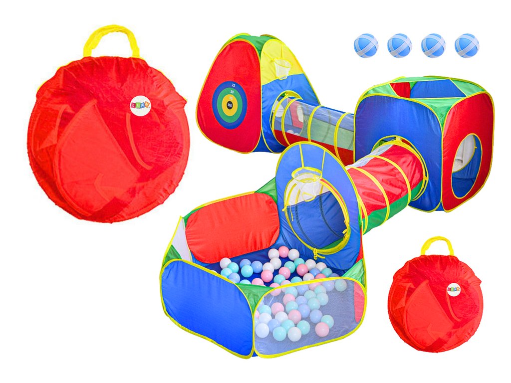 Nagy, színes gyereksátor alagutakkal és labdamedencével
