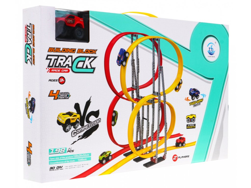 Versenypálya két autóval és hurkokkal. Az autópálya könnyen összeszerelhető, nem foglal sok helyet és könnyen kezelhető. Egyszerre ketten játszhatnak az autókkal. Az autók első- és hátsókerék-hajtással és erős mágnesekkel rendelkeznek, amelyek szilárdan a pályán tartják őket.