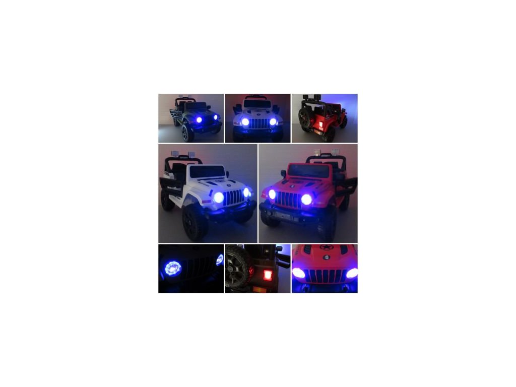 Jeep X10 gyerekautó gazdag felszereltséggel és innovatív dizájnnal. A játékautó belseje biztonsági övvel ellátott üléssel, MP3-as zenepanellel, USB- bemenetekkel és dallamokkal ellátott gombokkal van felszerelve. Első és hátsó lámpákkal világítja meg utazását.