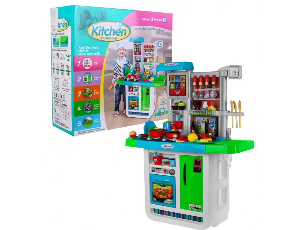 Bemutatunk Önnek egy multifunkcionális gyerekkonyhát , mely teljesen felszerelt. A konyhában folyóvíz csap , 2 égő , hűtőszekrény és nyitható ajtós sütő található. A konyhában főzés közben fény- és hanghatások vannak. Ezen kívül a készlet komplett ételeket és ételeket tartalmaz, amelyek minden bizonnyal jól jönnek a főzés során. További előnye a konyhába épített érintőpanel . Az érintőpanel 1 perc inaktivitás után automatikusan kikapcsol, ezzel kíméli az akkumulátor élettartamát. A konyha nagyon gondosan készült kiváló minőségű műanyagból . Megfelelő korosztály 3+ éves kortól. A termék európai CE biztonsági tanúsítvánnyal rendelkezik.