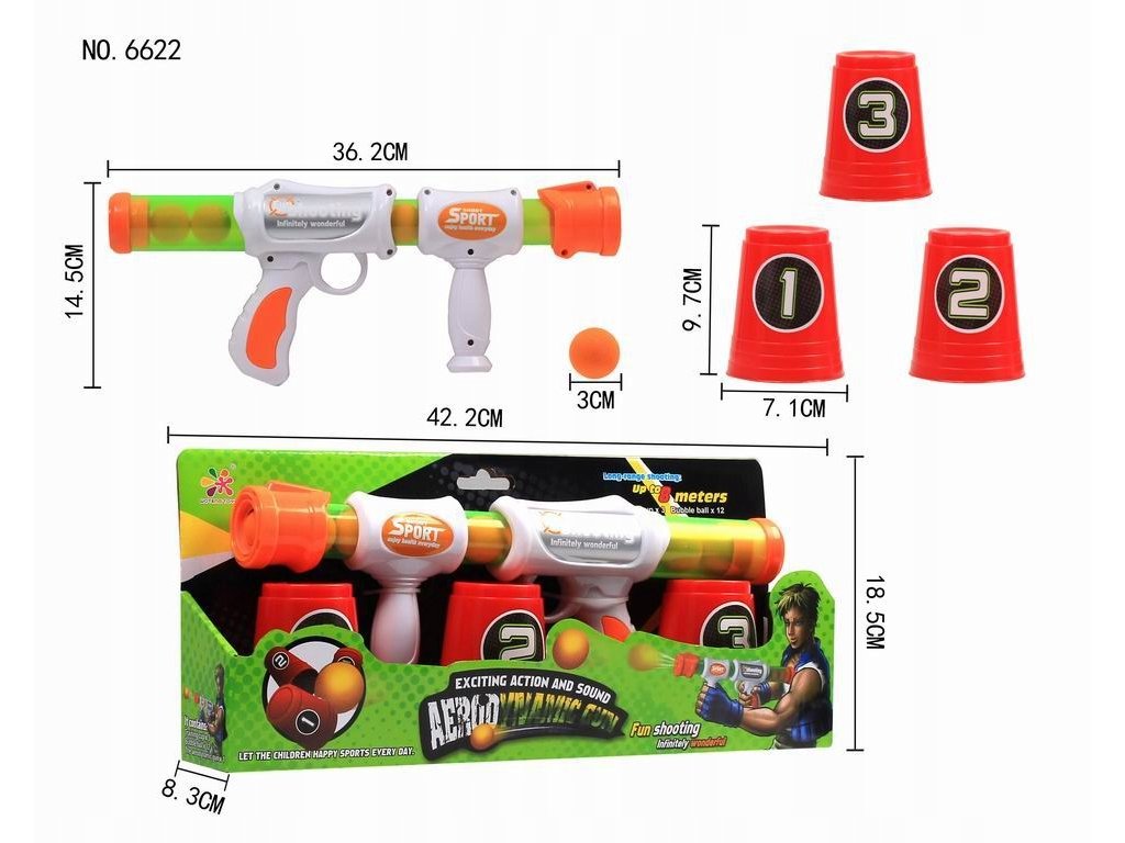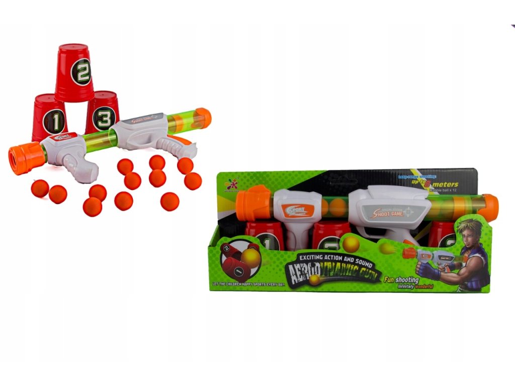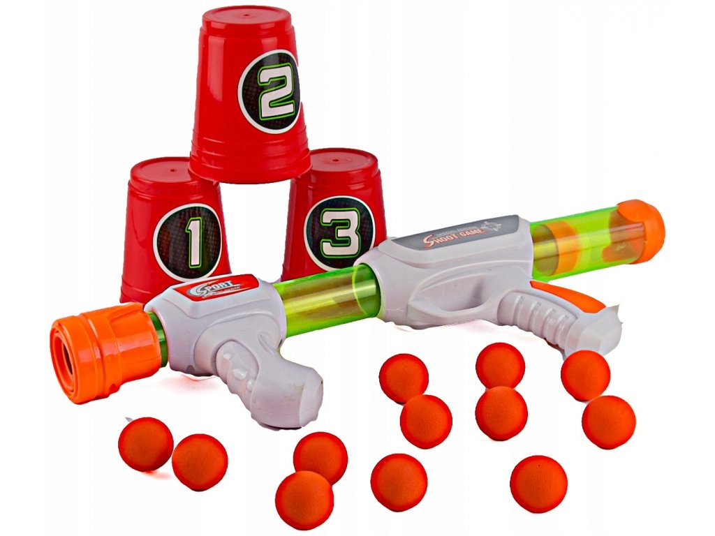 A pisztoly akár 8 m távolságból is képes golyót kilőni, és könnyen kezelhető. Csak helyezze be a labdát a hordó furatába, mozgassa a csövet, mint egy szivattyút, és tüzeljen! Izgalmas szórakozás, amely garantáltan minden gyereket izgat.