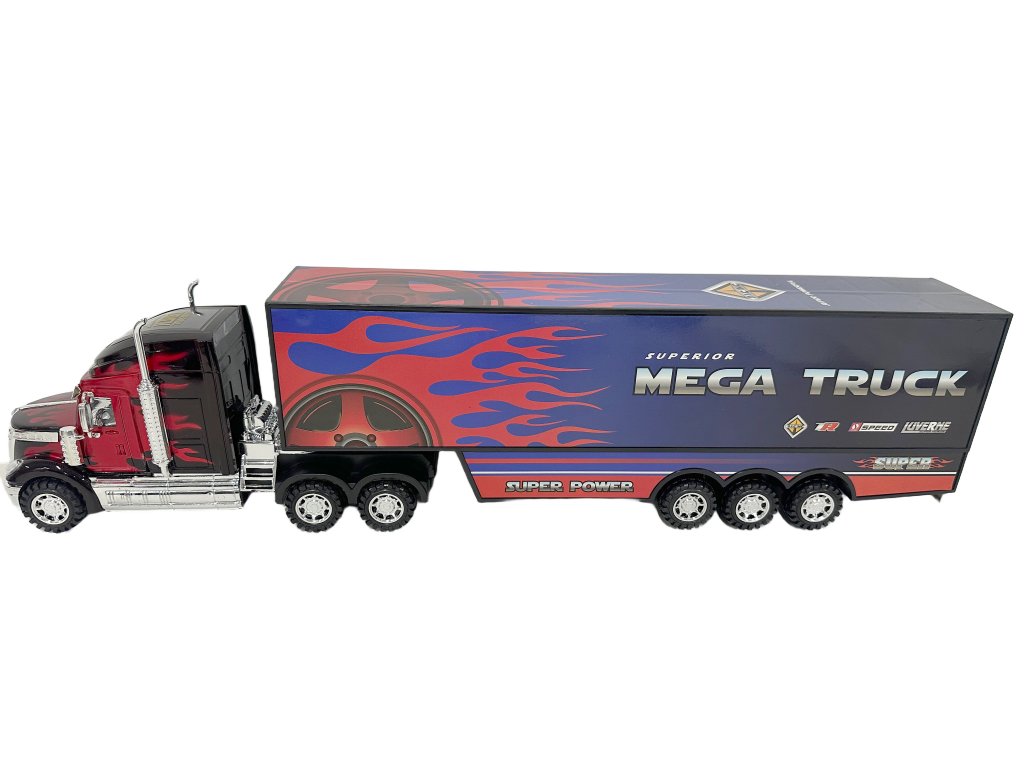 Nagy konténeres kamion markáns lángmintával rengeteg akciót hoz a kis sofőröknek. A lendkerekes meghajtás lehetővé teszi a teherautó akkumulátorok nélküli elindítását, egyszerűen csak meg kell lökni és elengedni. A gomb megnyomásával fény- és hanghatások aktiválódnak, amelyek még élénkebbé teszik. Ideális azoknak a gyerekeknek, akik imádják a nagy autókat, a gyors rajtokat és a látványos bemutatókat. Alkalmas otthoni játékhoz, játszószobába, autóverseny-pályára vagy modellek gyűjteményébe. A játék 3 éves kortól ajánlott gyermekek számára.