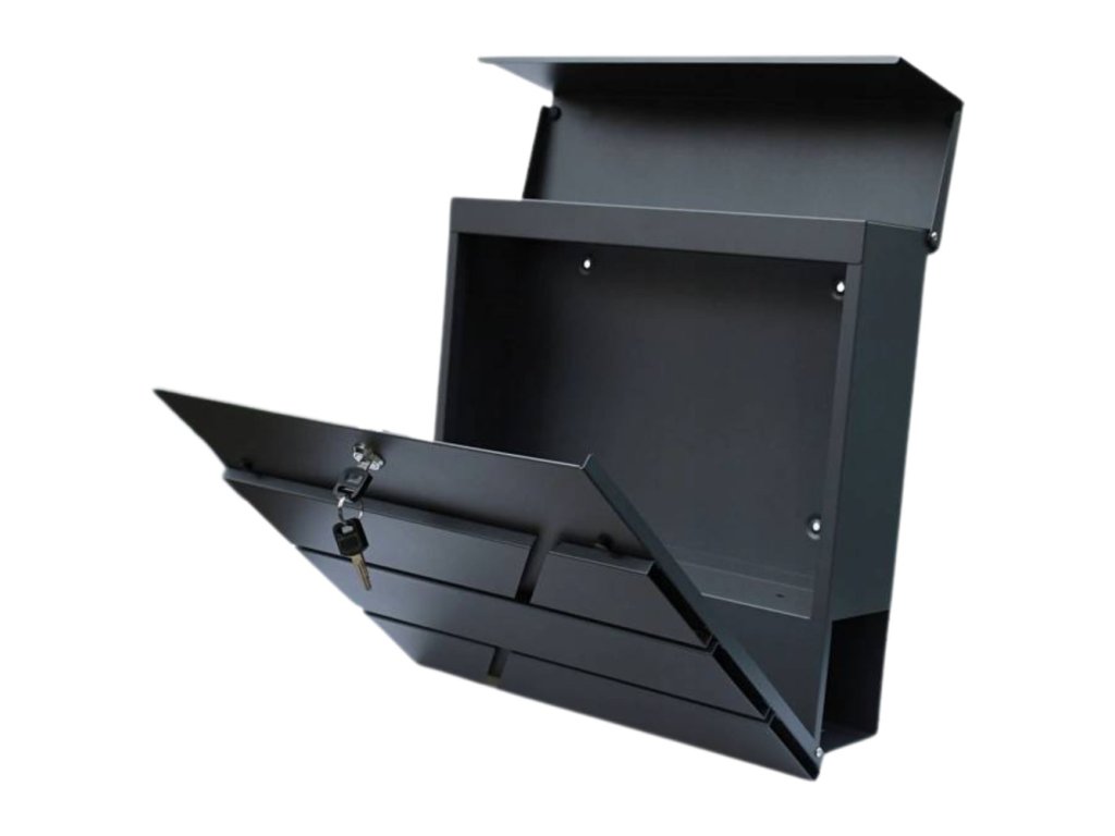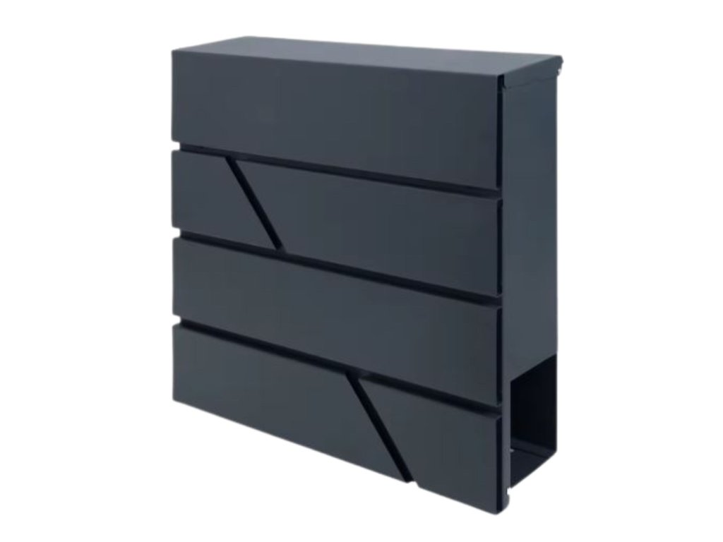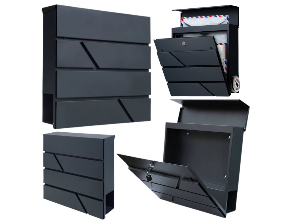 A modern postaláda praktikus és stílusos megoldás minden házhoz és céghez. A minőségi horganyzott acélnak és a porszórt bevonatnak köszönhetően rendkívül ellenálló az esővel, a korrózióval és a mechanikai sérülésekkel szemben. A minimalista dizájn és a finom kivágások modern megjelenést kölcsönöznek neki, amely tökéletesen illeszkedik a különböző típusú homlokzatokhoz. Nagy méretének köszönhetően kényelmesen elférnek benne a nagyobb borítékok és nyomtatványok is, akár A4-es méretig.
