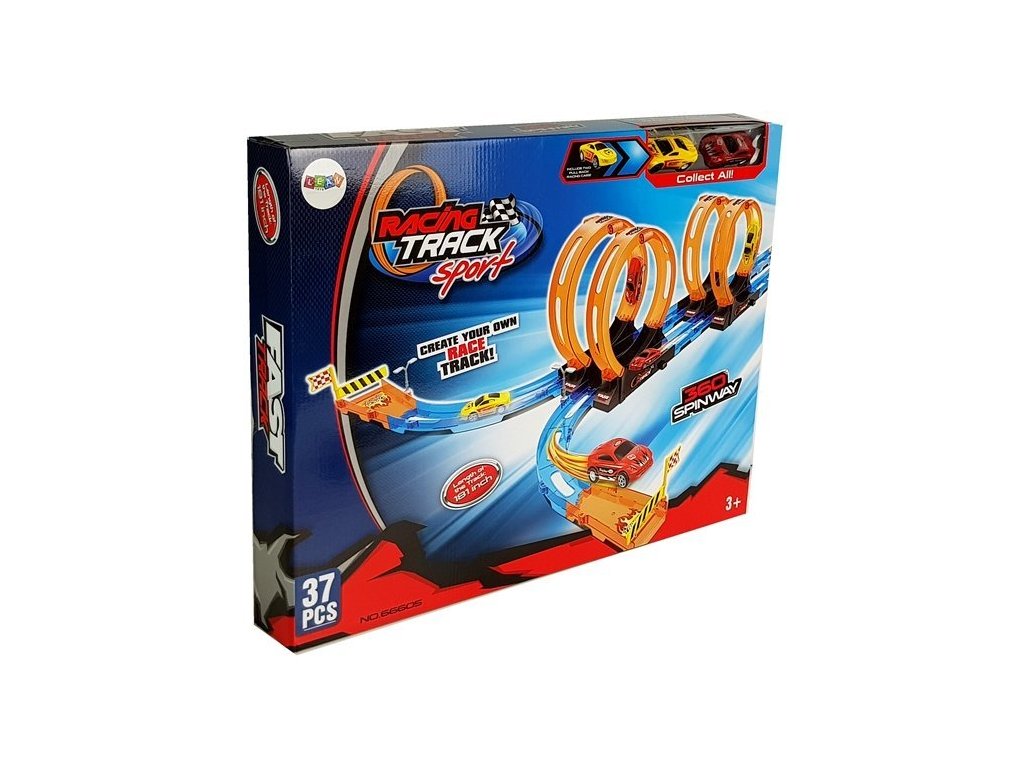 Nagy autópálya 360 fokos hurkokkal. Csak húzd ki a játékautókat és lőj. A készlet 37 elemből áll.