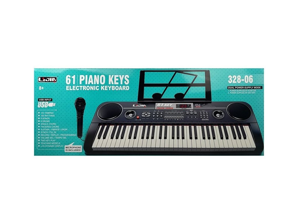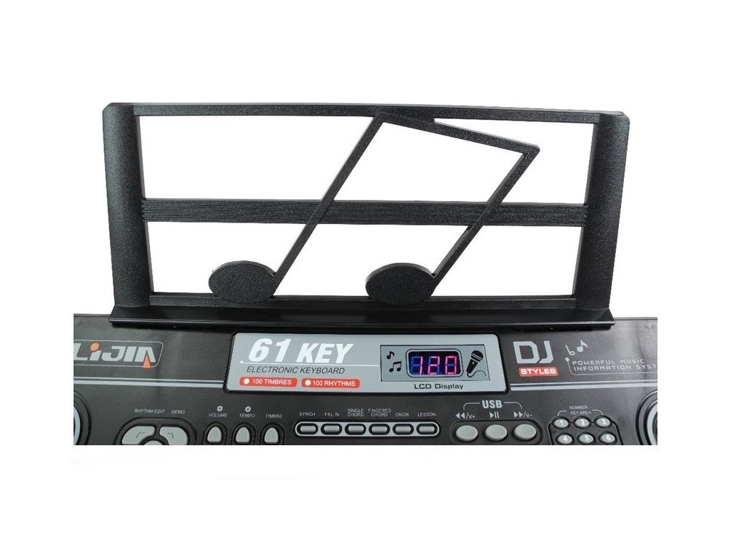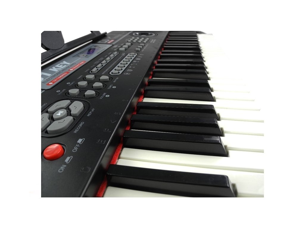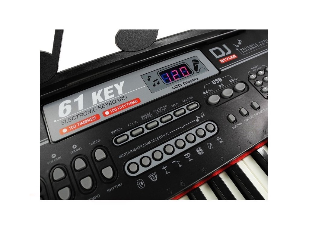 Csodálatos billentyűzet kezdő zenészek számára számos funkcióval. Lehetővé teszi a rögzítési funkciót, 100 előre felvett ritmussal rendelkezik. A gyermek énekelhet a mikrofonba és lejátszhatja a létrehozott dalokat. Ha saját zenei hátteret szeretne, USB-eszközt vagy jack bemenettel rendelkező mobiltelefont csatlakoztathat a billentyűzethez.