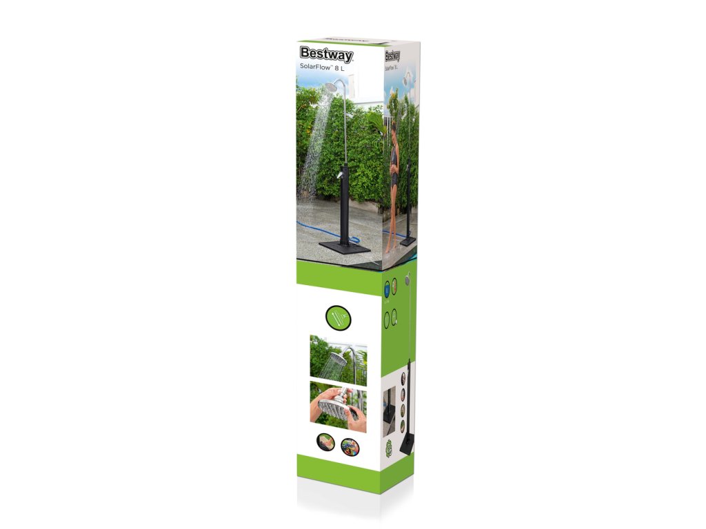 Az állítható vízhőmérsékletű napelemes zuhanyzó szilárd alappal rendelkezik, amely biztosítja a stabilitást. A zuhany strapabíró anyagból készült, amely garantálja a termék hosszú élettartamát és ellenáll az időjárási viszonyoknak.