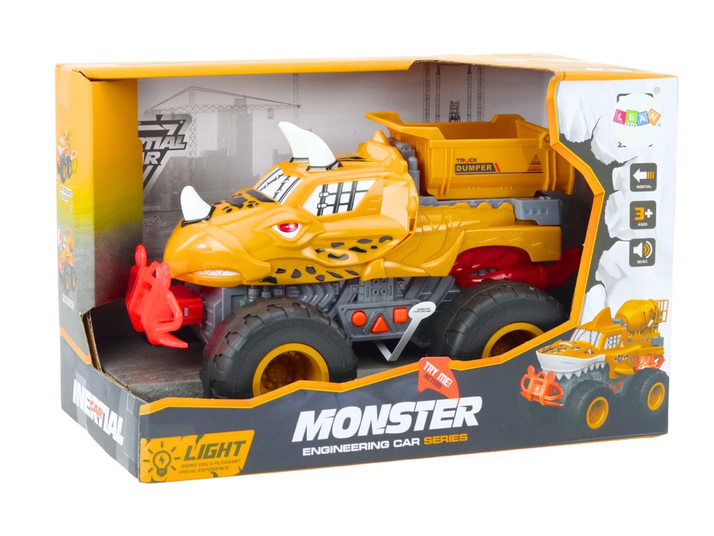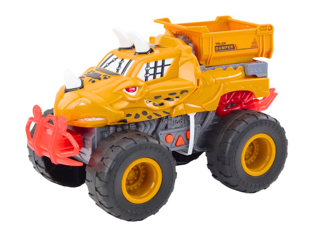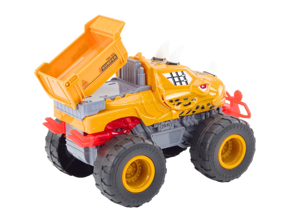 Narancssárga dinoszaurusz terepjáró súrlódó meghajtású billenőkocsival