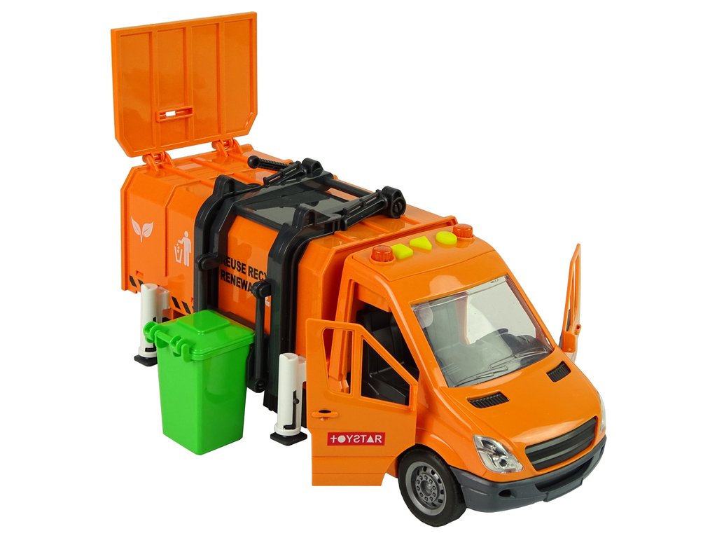 Narancssárga elektromos játékszemetes teherautó súrlódó hajtással és hangeffektusokkal