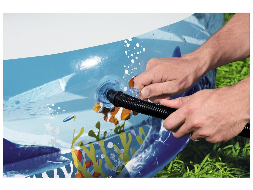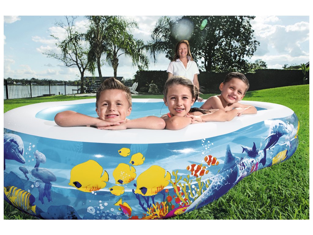 Nagy, megbízható medence az egész család számára , melyben a gyerekek szabadon úszhatnak. A medence könnyű, így a nap bármely szakában könnyedén áthelyezheti oda, ahol a legmelegebb. Könnyen felfújható és leereszthető, tárolása nem okoz gondot.