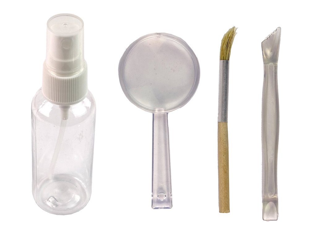 A készlet minden eszközt tartalmaz, amire egy kis régésznek szüksége van: egy valósághű triceratops-kövület, egy kulacs, egy ecset, egy nagyító és egy spatula.