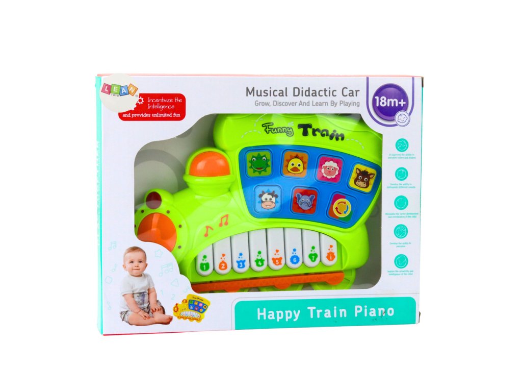 A mozdony 6 állatgombbal van felszerelve, amelyek különböző hangokat és zajokat indítanak el, valamint Do-Re-Mi-Fa-So-La-Ti-Do jelzésű hangjegy billentyűkkel, amelyeknek köszönhetően gyermeke elsajátíthatja a zene alapjait. A zongora számos oktató dallamot és szórakoztató effektust tartalmaz, amelyek fejlesztik gyermeke hallását, zenei memóriáját, valamint szem- és kézkoordinációját.