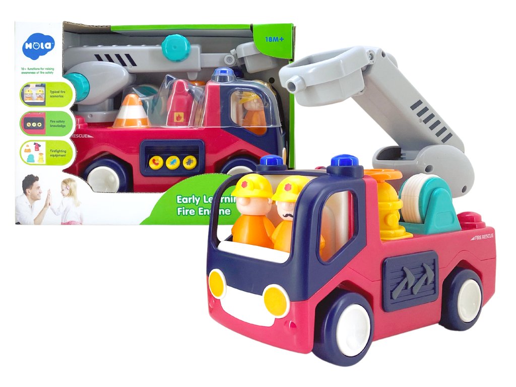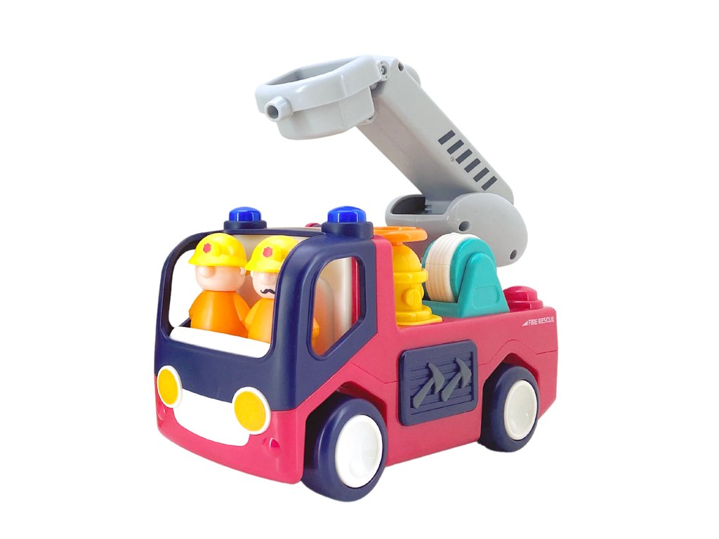 Ezt a játékot a kicsikre való tekintettel terveztük. A játék színei és formája biztosan felkelti gyermeke figyelmét, és játékra ösztönzi. Két tűzoltó van a kabinban. Az utánfutó egy kisebb mentési művelethez szükséges elemeket tartalmazza. A létrának két gombja van a vezérléshez.