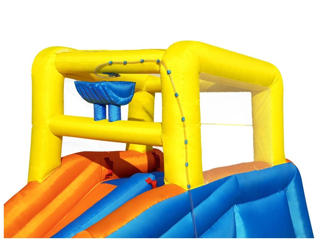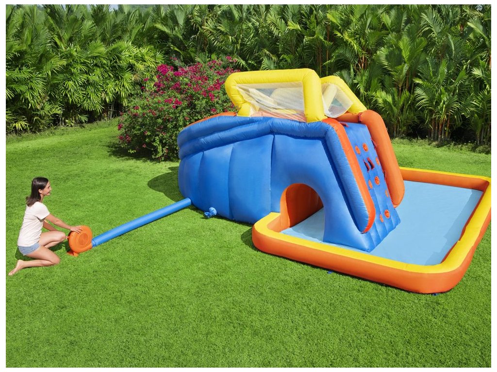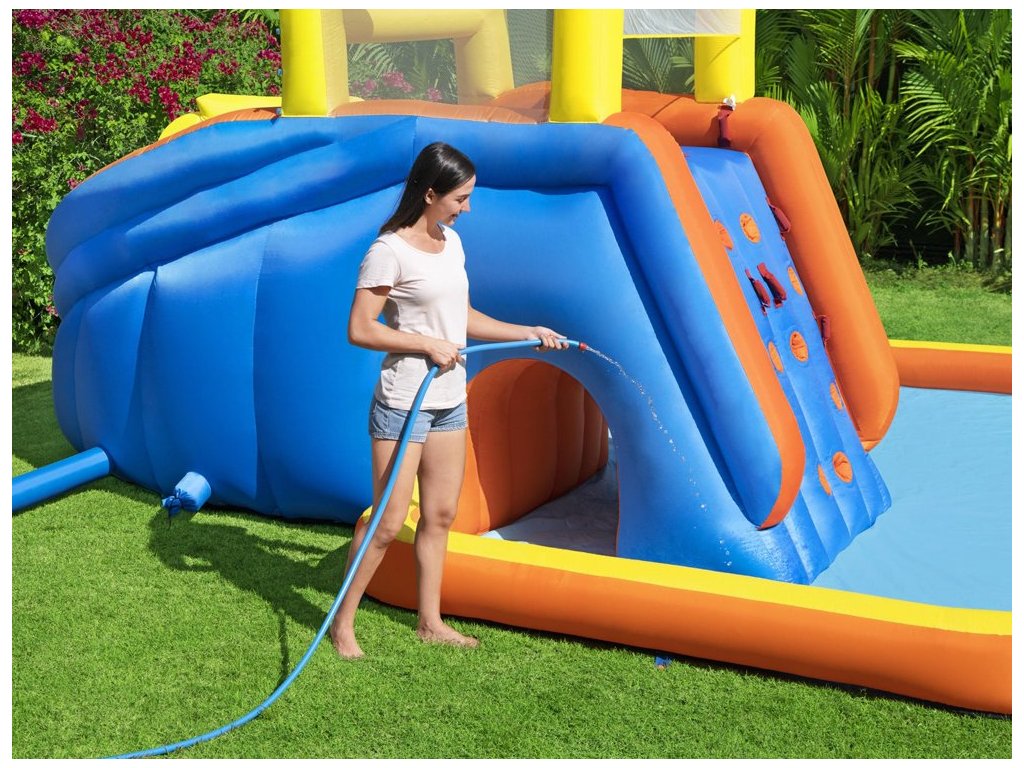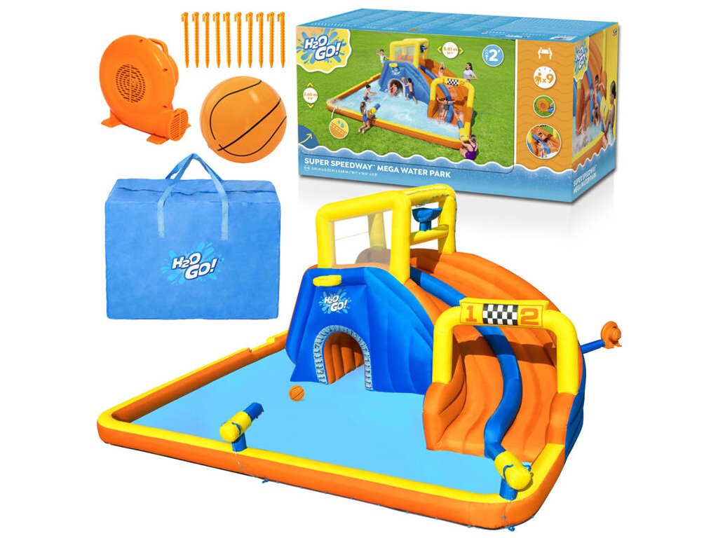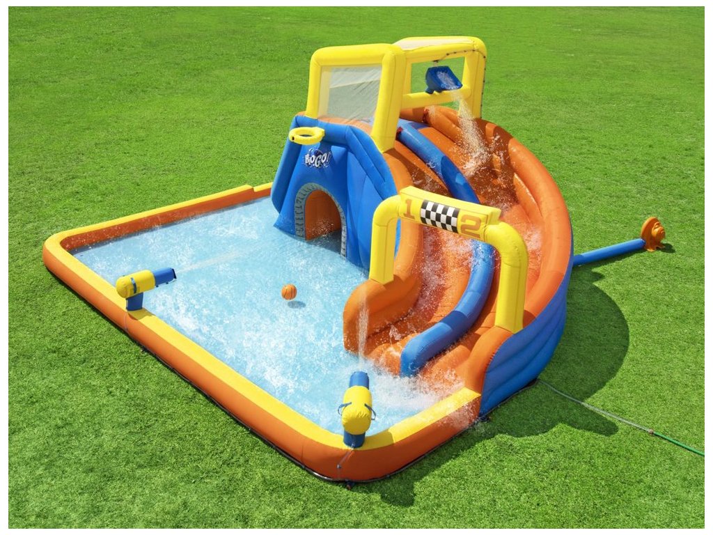 Színes felfújható vízi játszótér H2OGo! A Bestway Super Speedway™ autója órákon át remek szórakozást biztosít a kertben. Minden gyermek szeret a vízben játszani, és a Bestwaynek köszönhetően most saját mini víziparkot alakíthat ki a kertjében. Ez a felfújható vízi park 2 perc alatt felállítható! Csak egy sima felületű kertre van szüksége, és máris indulhat. A gyerekek nagyon örülni fognak, ha sok látnivaló van a ház alatt, versenyeket vagy versenyeket szervezhet a barátokkal, csobbanhat a vízben, mászhat és csúszhat le, kosárlabdázhat és vízágyúkat lőhet, hancúrozhat és hancúrozhat egész nyáron.