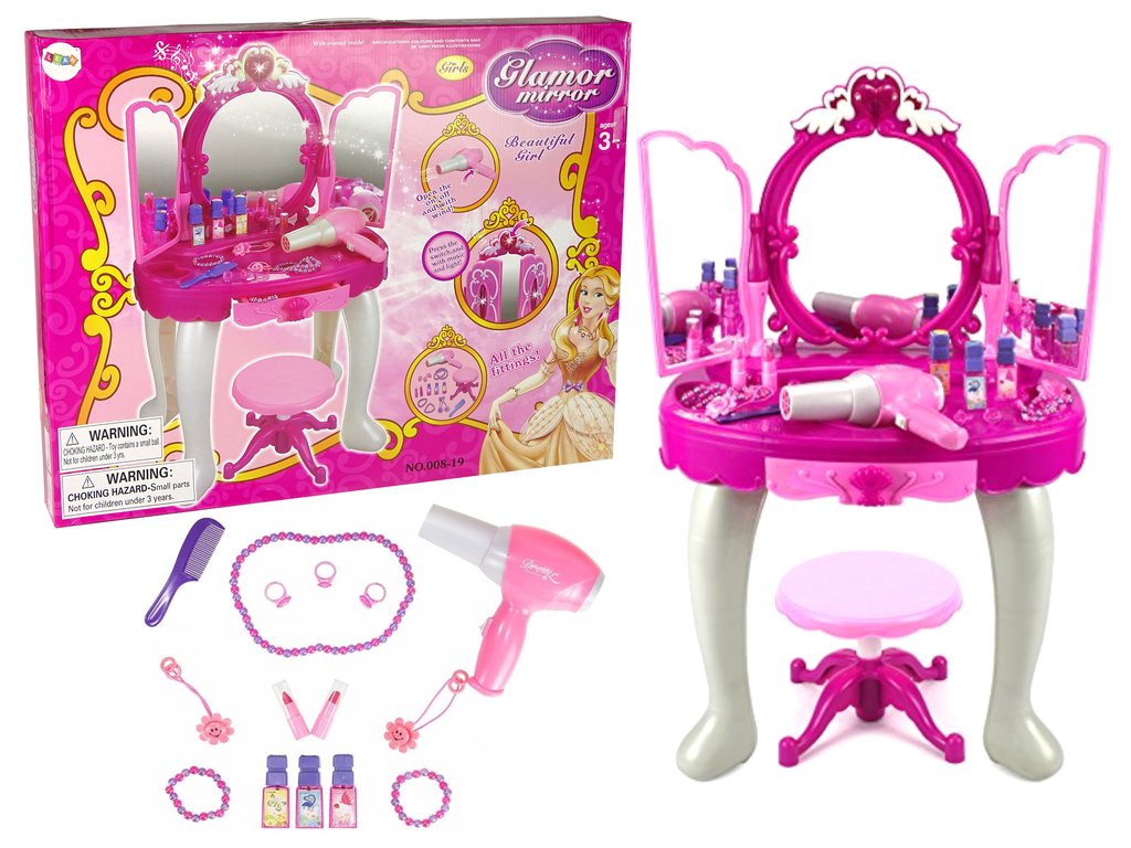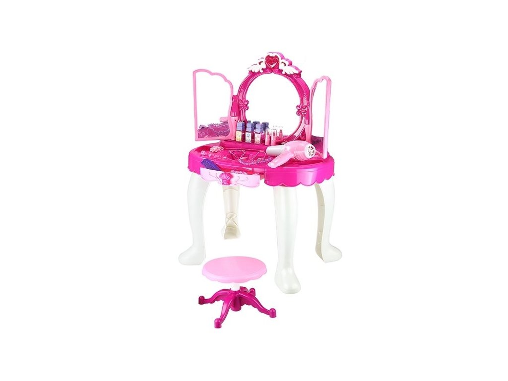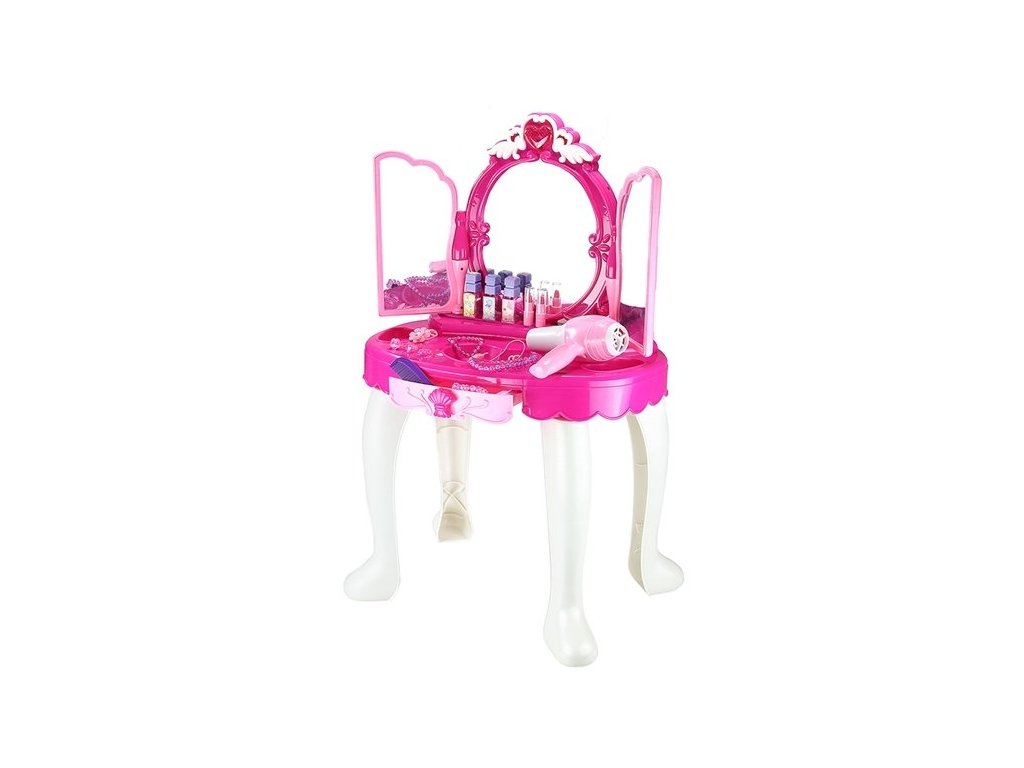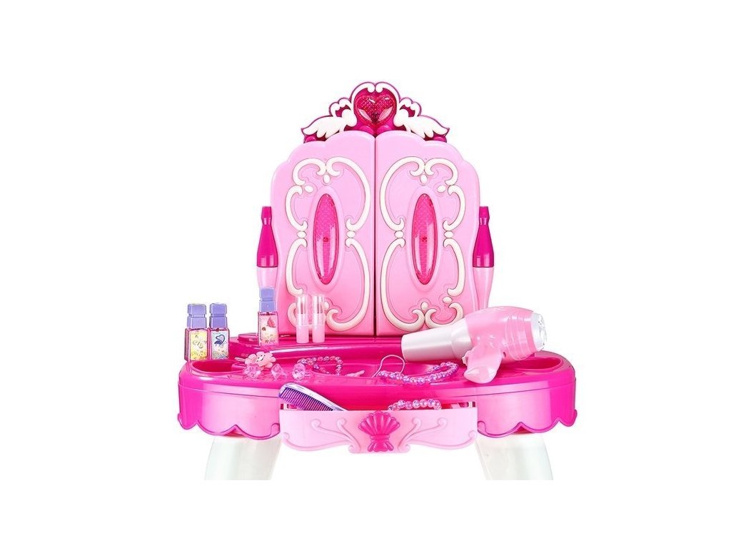 A fésülködőasztal remek játék kislányoknak. Az asztalon van egy tükör, ahol a keret tetején egy szív található, aminek hang- és fényfunkciója van.