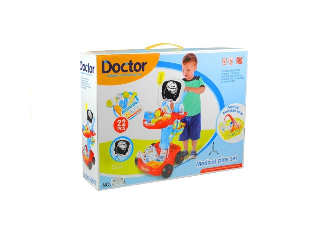 Stabil orvosi kocsi , amely többfunkciós orvosi felszereléssel van felszerelve. A röntgensugárzással is ellátott orvosi kocsi segítségével a gyerekek többet megtudhatnak az alapvető orvosi felszerelésekről és az emberi testről. Az orvosi készlet tele van orvosi eszközökkel, amelyeket egy praktikus, kerekeken guruló kocsiban helyeztek el, így a gyerekek mindig kéznél tarthatják a pácienseik kezeléséhez szükséges eszközöket.
