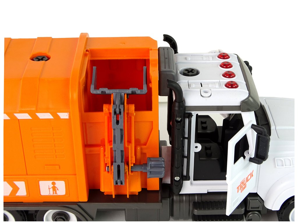 De ez még nem minden! A szemeteskocsi 4 különböző hanggal és színes lámpával van felszerelve, melyek a tetején lévő piros gombokkal kapcsolhatók be. Ez realitást ad, és a gyerekek a hulladéktelep valódi alkalmazottainak érezhetik magukat.