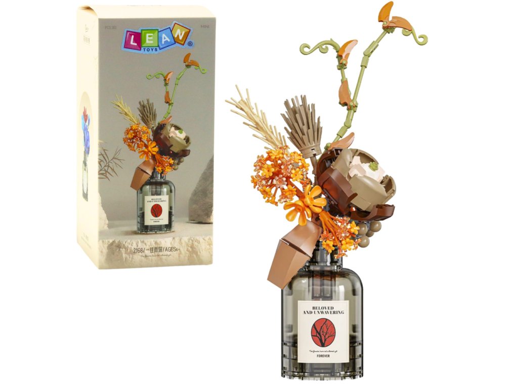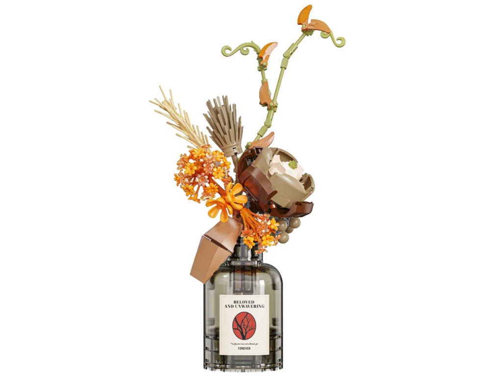 Fedezze fel az ősz varázsát egy egyedi építőkészlet formájában, amely ötvözi a kreatív szórakozást a dekorációs eleganciával. Az őszi csokor a barna, narancssárga, bézs és arany tompa színeiben megragadja a télre készülő természet hangulatát. A készlet stilizált virágokat, szárított füveket, kúszónövényeket és leveleket tartalmaz, amelyek együttesen harmonikus kompozíciót alkotnak.