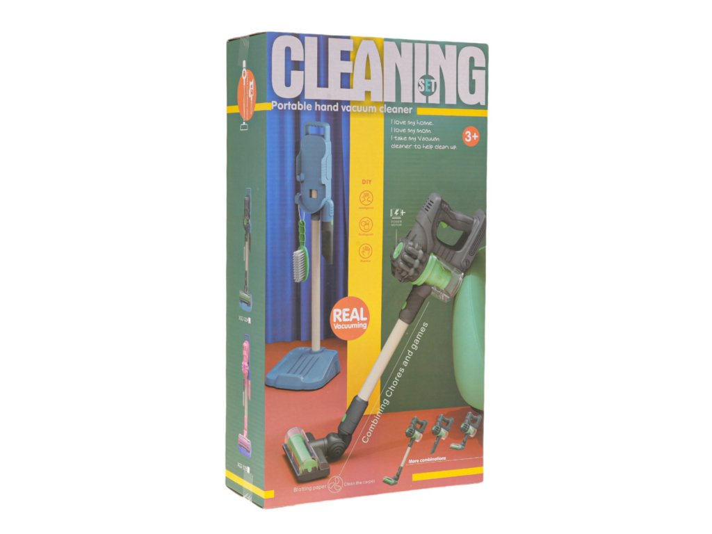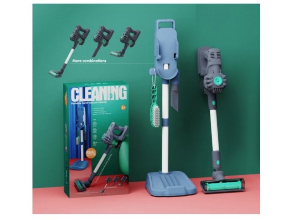 Tisztító készlet pálcikaporszívóval 3 éves kortól gyerekeknek. A porszívó a legjobb minőségű műanyagból készült, és nem csak úgy néz ki, mint az igazi, hanem porszívózik is. A gyermek porszívóval felszívhatja az apró szennyeződéseket vagy port. A készlet egy porszívó dokkoló állomásból, egy porszívóból cserélhető tartozékokkal és egy seprűből áll.