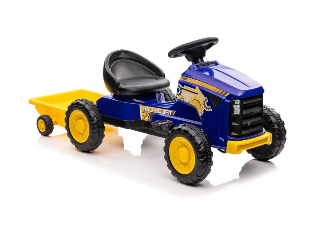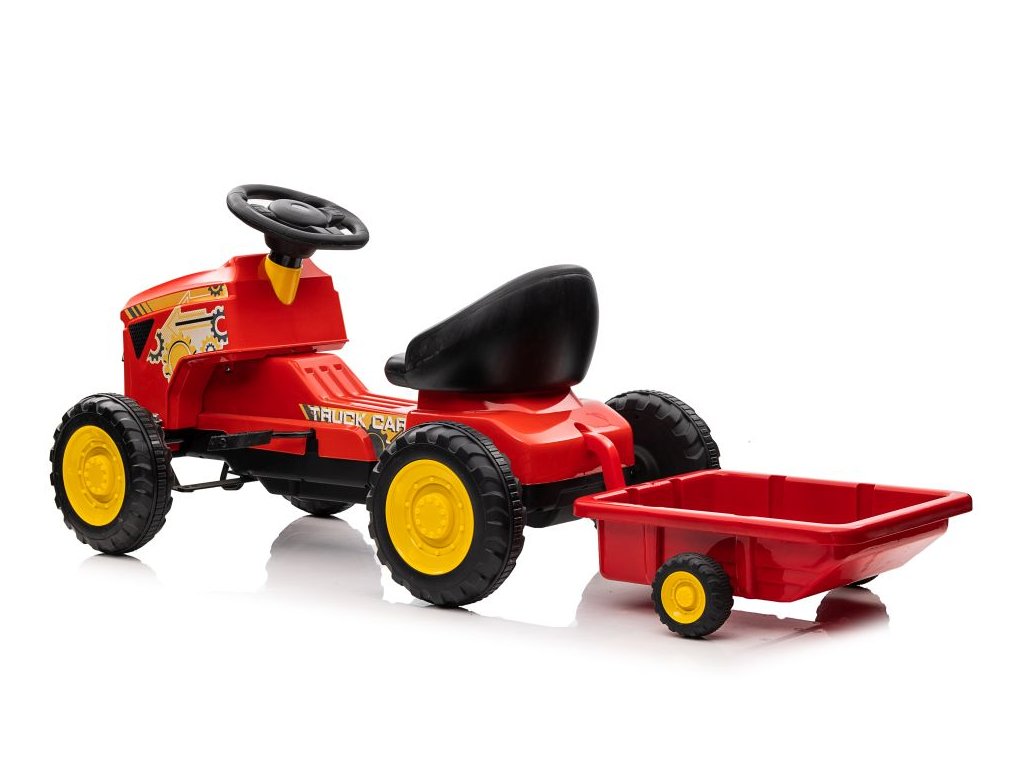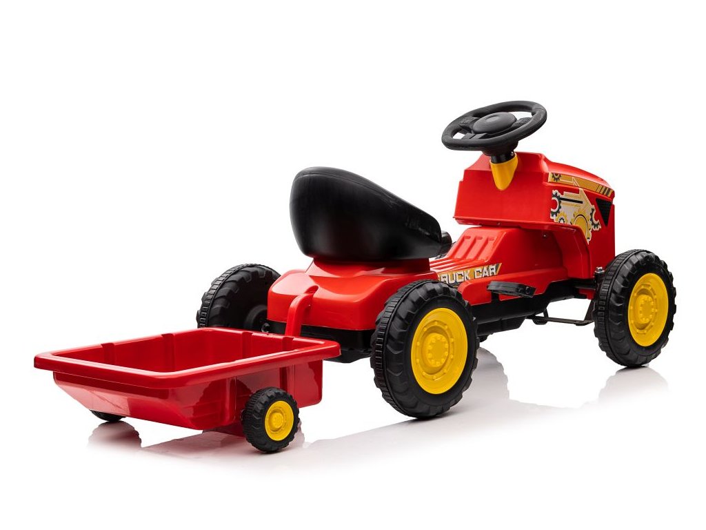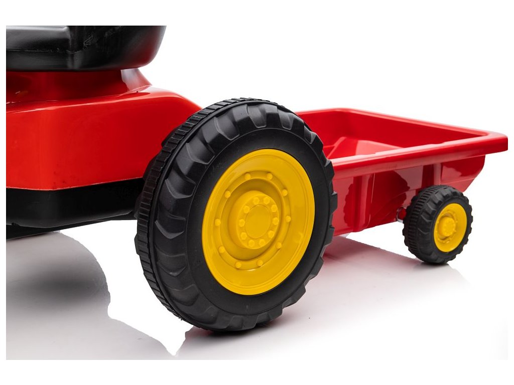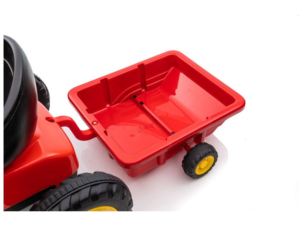 A traktor előnye az utánfutó, melybe a gyerek elhelyezheti kedvenc játékait és kiviheti őket egy körre.