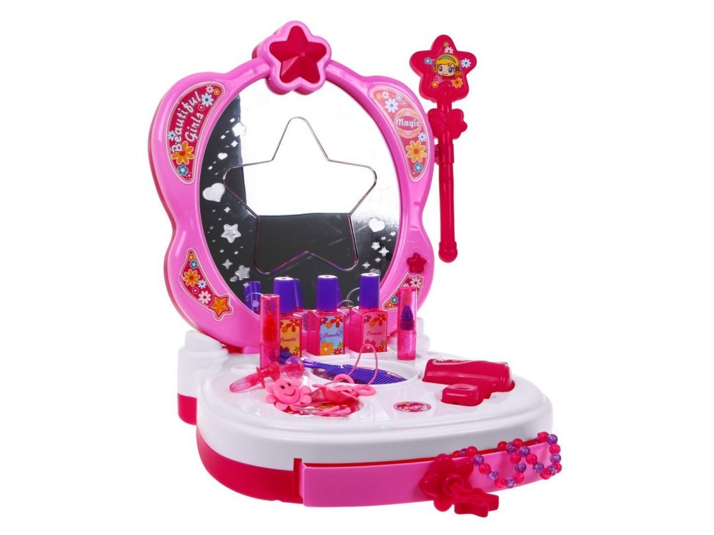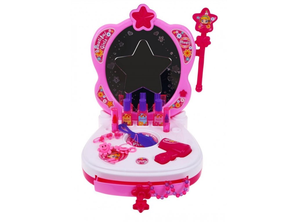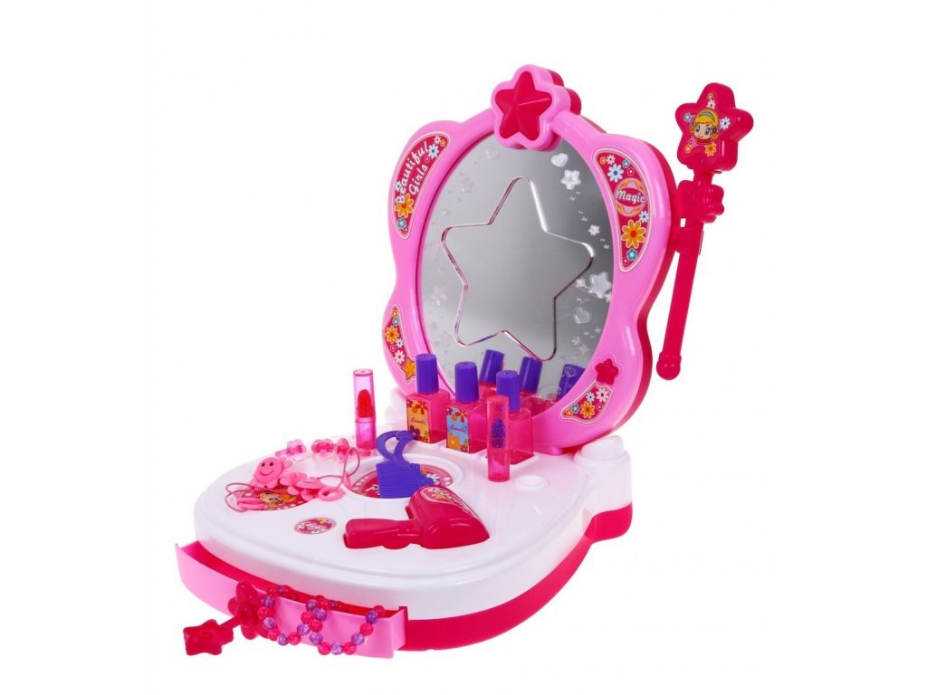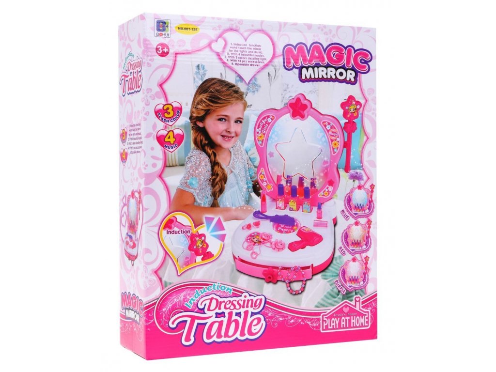 Mesebeli fésülködőasztal kiegészítőkkel és hangeffektusokkal. A fésülködőasztalon még egy lámpa is van a tükörön, ami 3 színben (kék, piros, rózsaszín) világít. A WC 4 zenei háttérrel rendelkezik. A készlethez tartozik egy varázspálca tündérek számára.